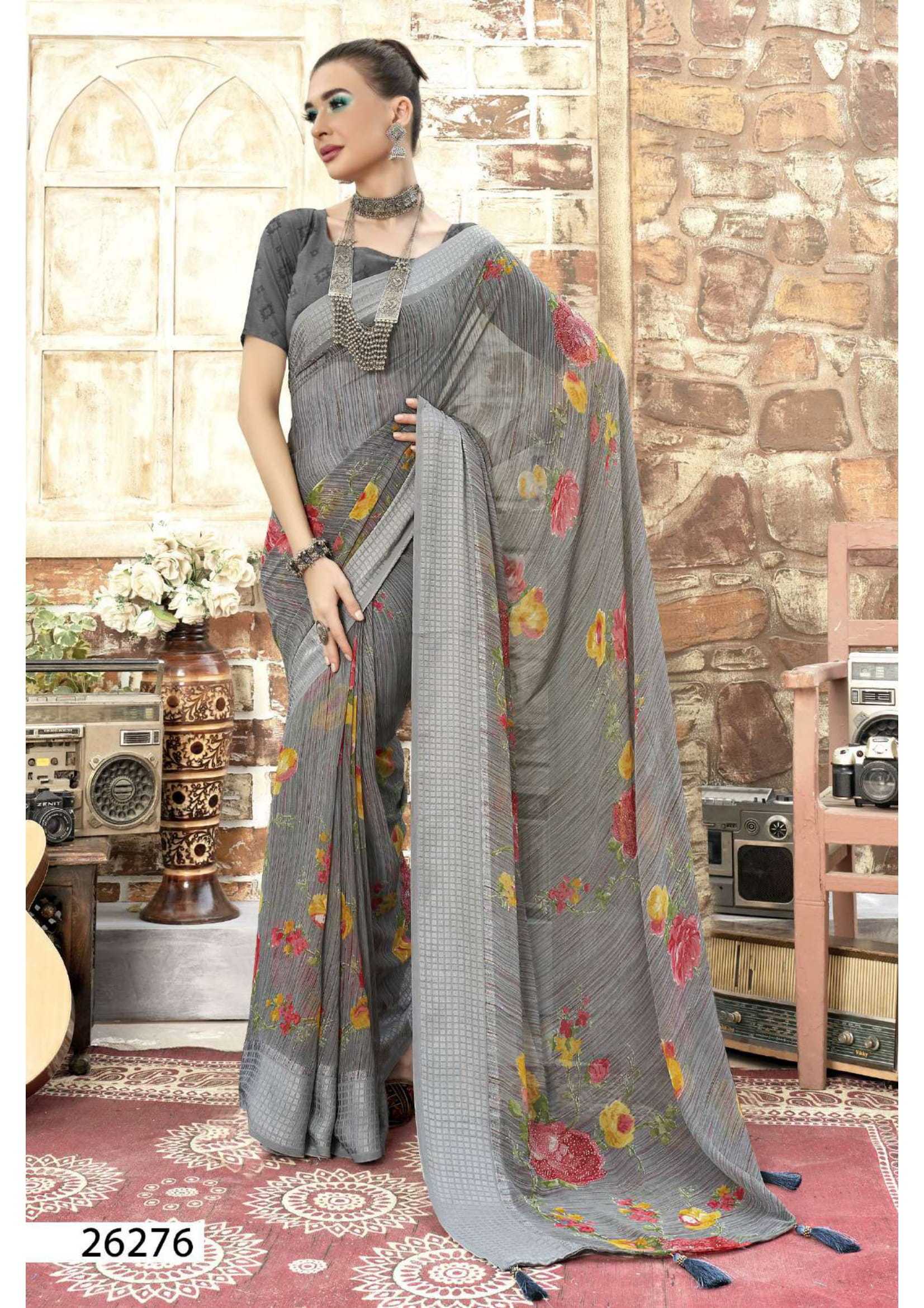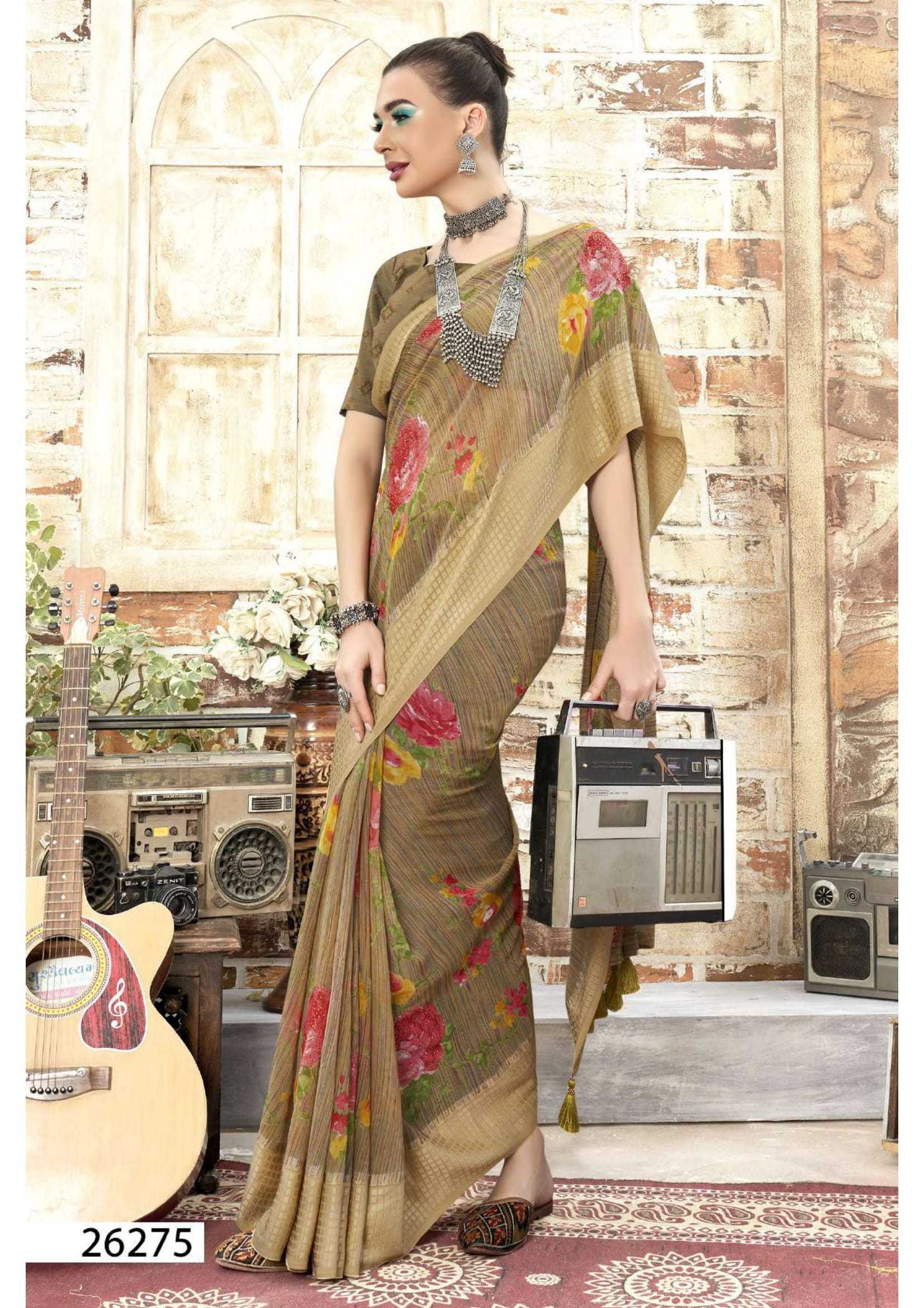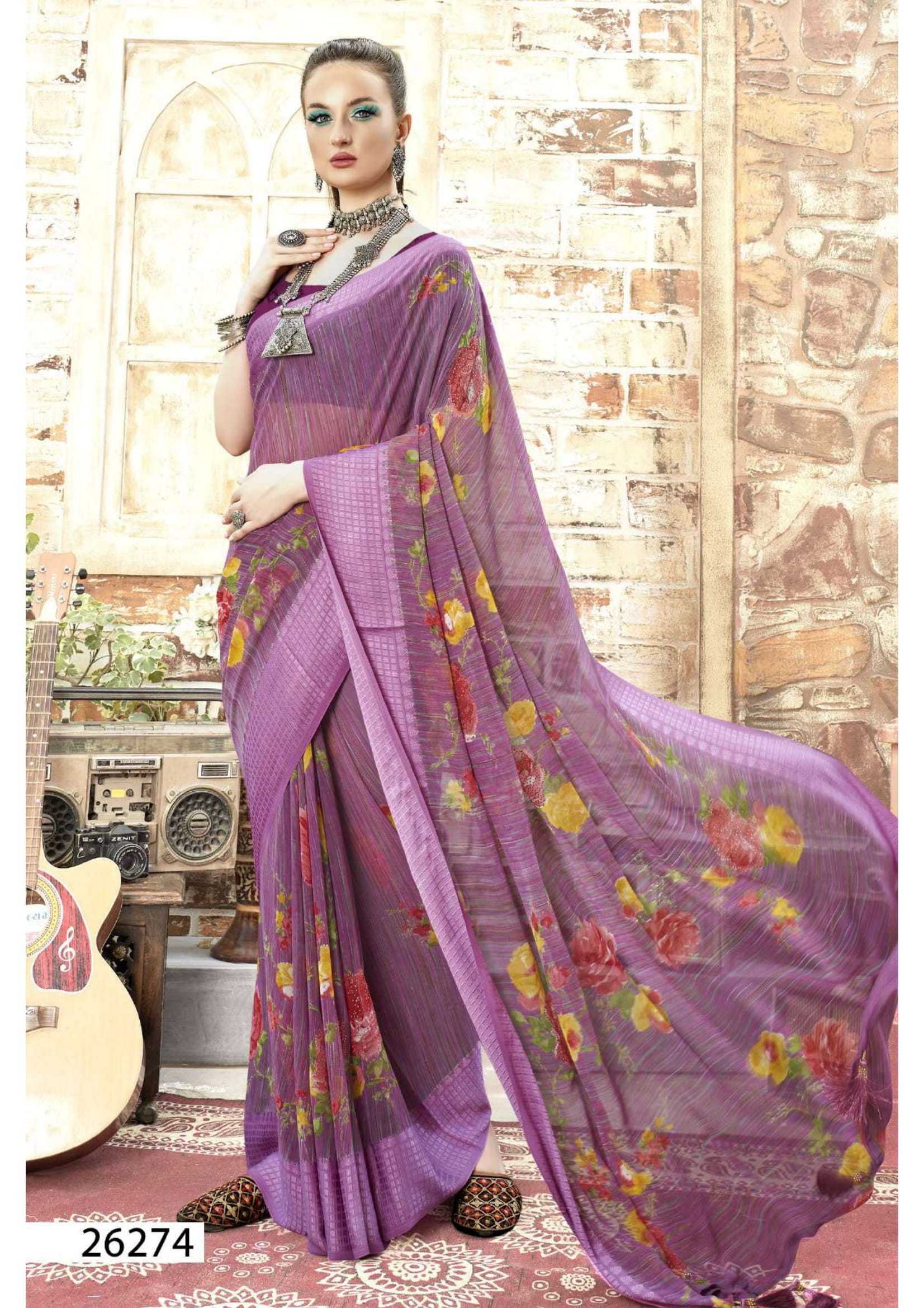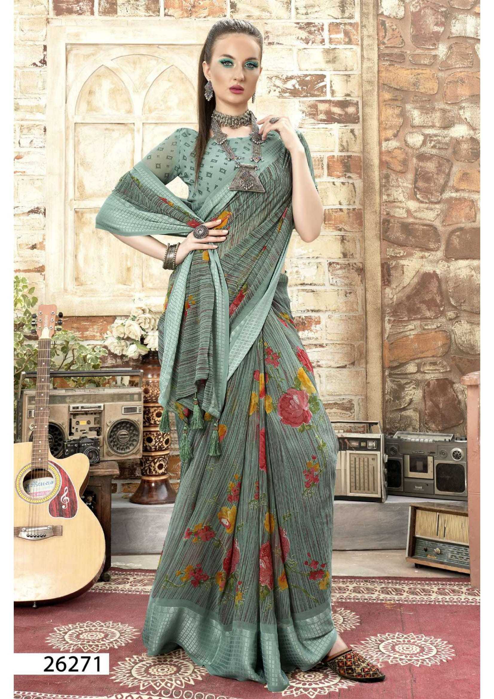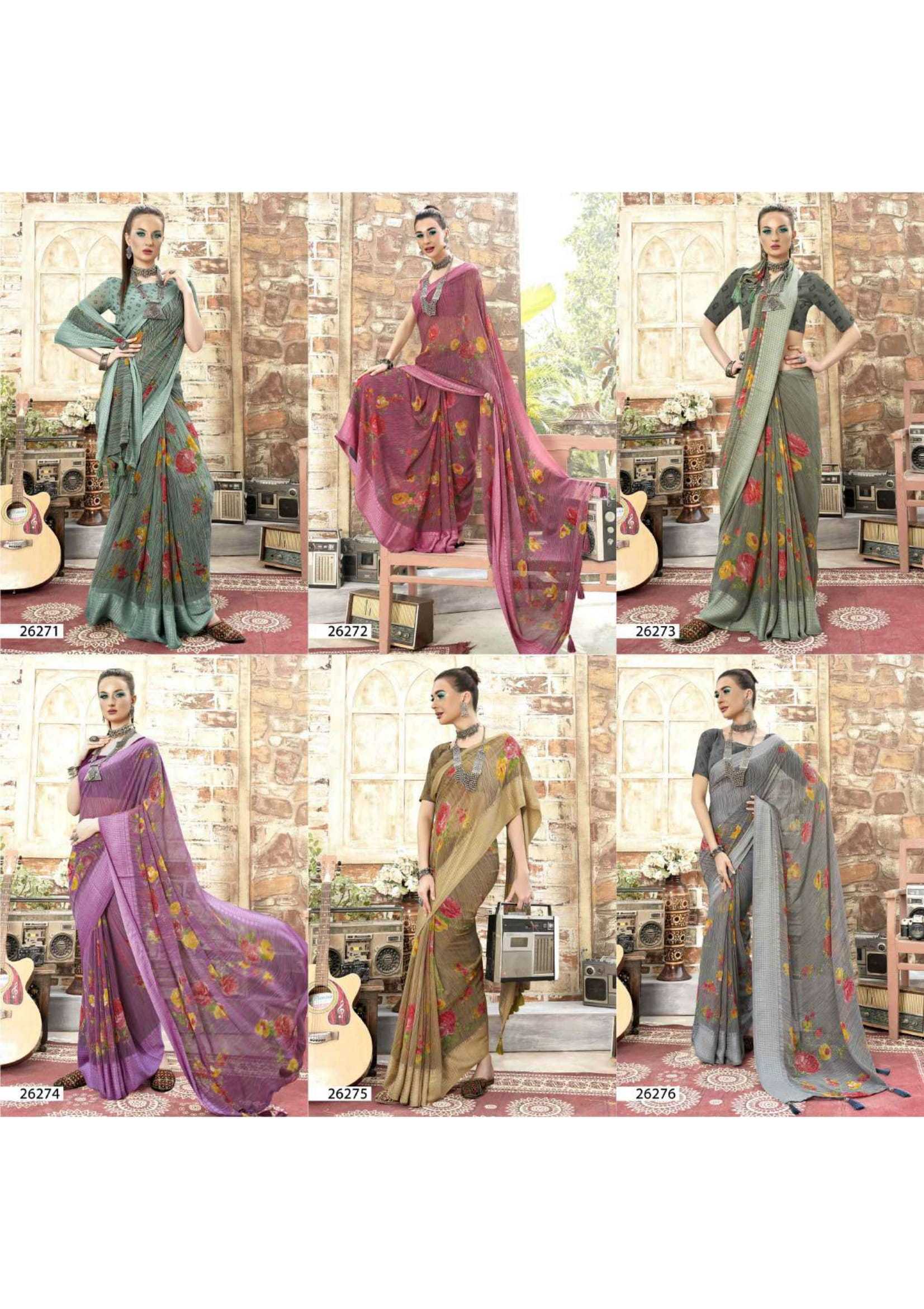 Looking for vallabhi prints sanjula vol 2 stylish georgette pretty look swarosaki work saree Full Catalouge at Best Price? Buy Now vallabhi prints sanjula vol 2 stylish georgette pretty look swarosaki work saree at Wholesale Rate of Rs 5010 with Total 6 Pcs from authroized dealer and supplier of Vallabhi Prints Brand. Cost of Each piece is just only Rs 835 which is very low and affordable price to resale the product in your retail store. rrgandhi is Surat based Wholesale Supplier & Dealer of Vallabhi Prints Brand. Click on Brand name to Know more about Brand's products.
