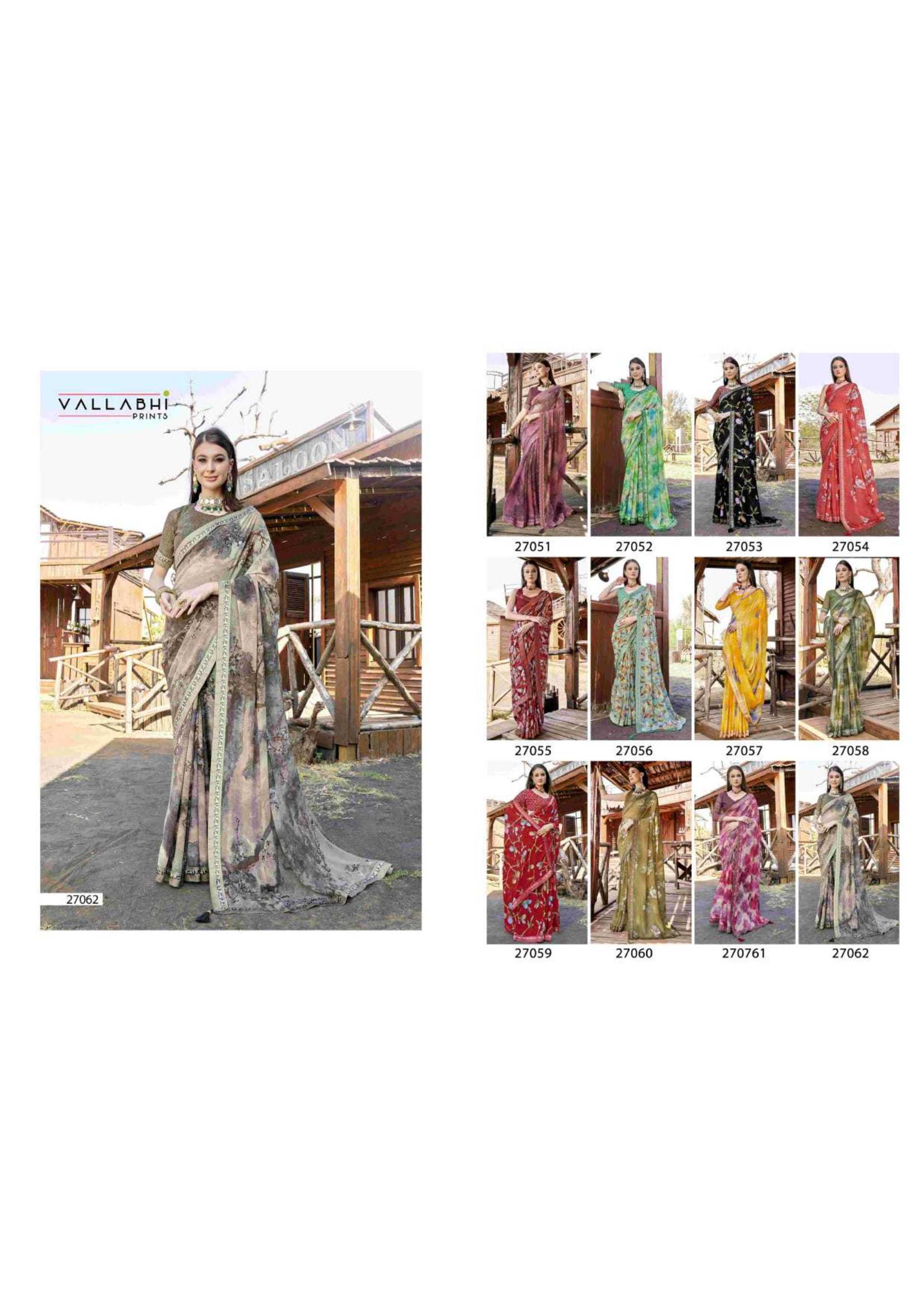 Looking for vallabhi prints snehangi 27051-27062 classy look georgette saree exports Full Catalouge at Best Price? Buy Now vallabhi prints snehangi 27051-27062 classy look georgette saree exports at Wholesale Rate of Rs 8580 with Total 12 Pcs from authroized dealer and supplier of Vallabhi Prints Brand. Cost of Each piece is just only Rs 715 which is very low and affordable price to resale the product in your retail store. rrgandhi is Surat based Wholesale Supplier & Dealer of Vallabhi Prints Brand. Click on Brand name to Know more about Brand's products.