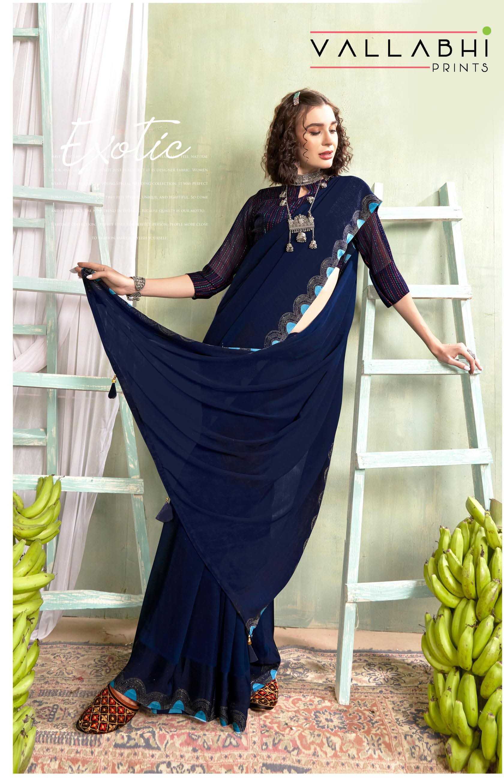 Looking for vallabhi prints sudan classic look georgette saree with blouse Full Catalouge at Best Price? Buy Now vallabhi prints sudan classic look georgette saree with blouse at Wholesale Rate of Rs 4890 with Total 6 Pcs from authroized dealer and supplier of Vallabhi Prints Brand. Cost of Each piece is just only Rs 815 which is very low and affordable price to resale the product in your retail store. rrgandhi is Surat based Wholesale Supplier & Dealer of Vallabhi Prints Brand. Click on Brand name to Know more about Brand's products.