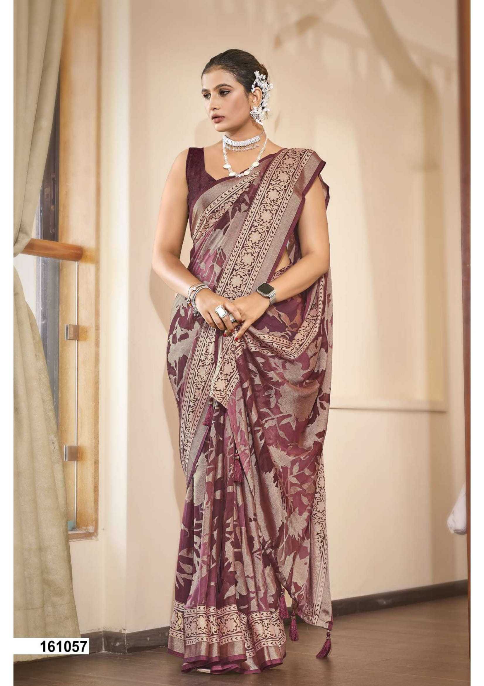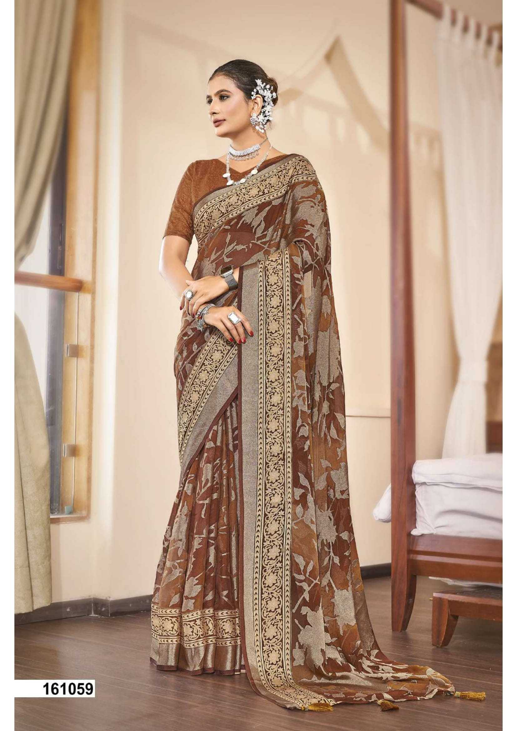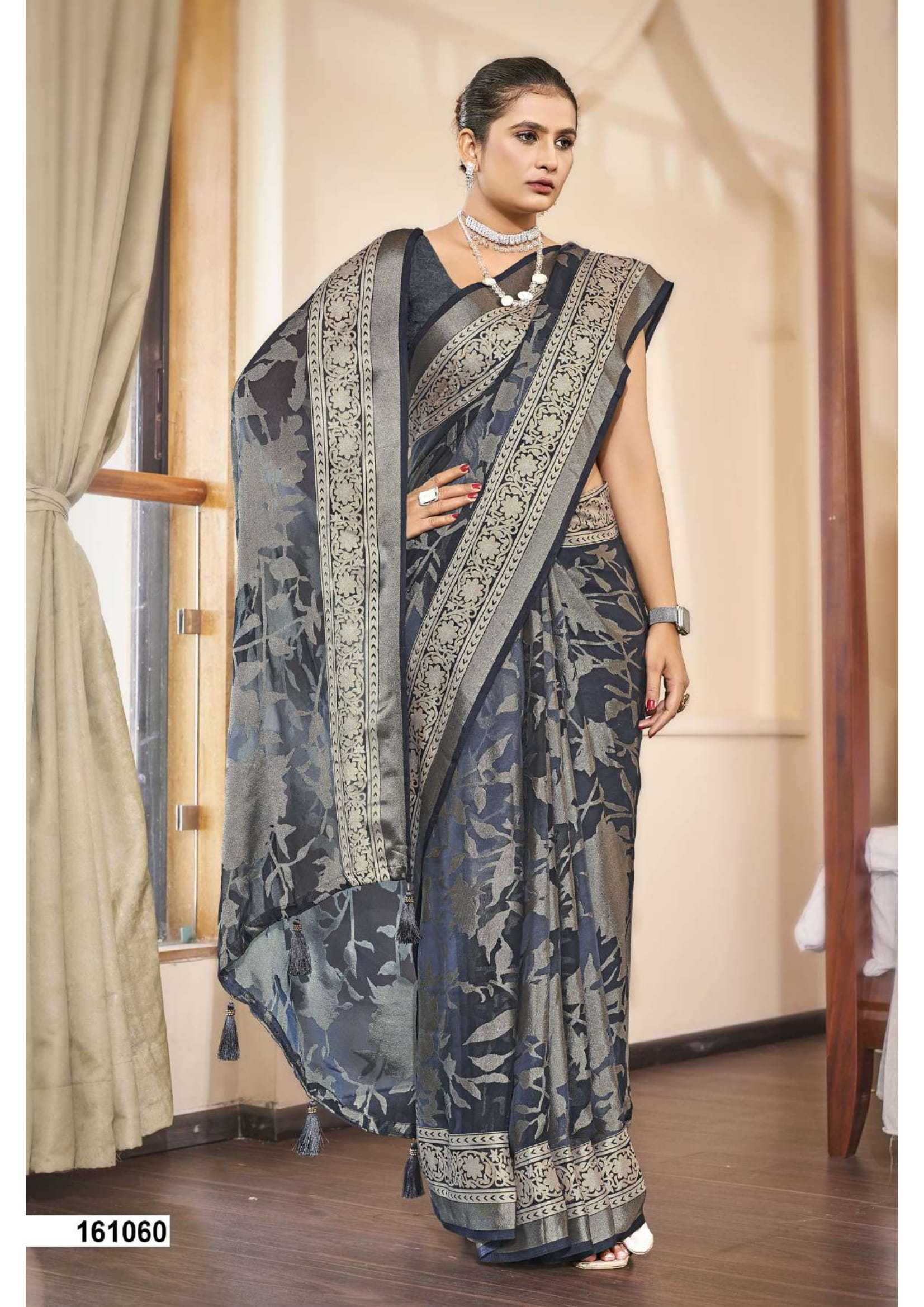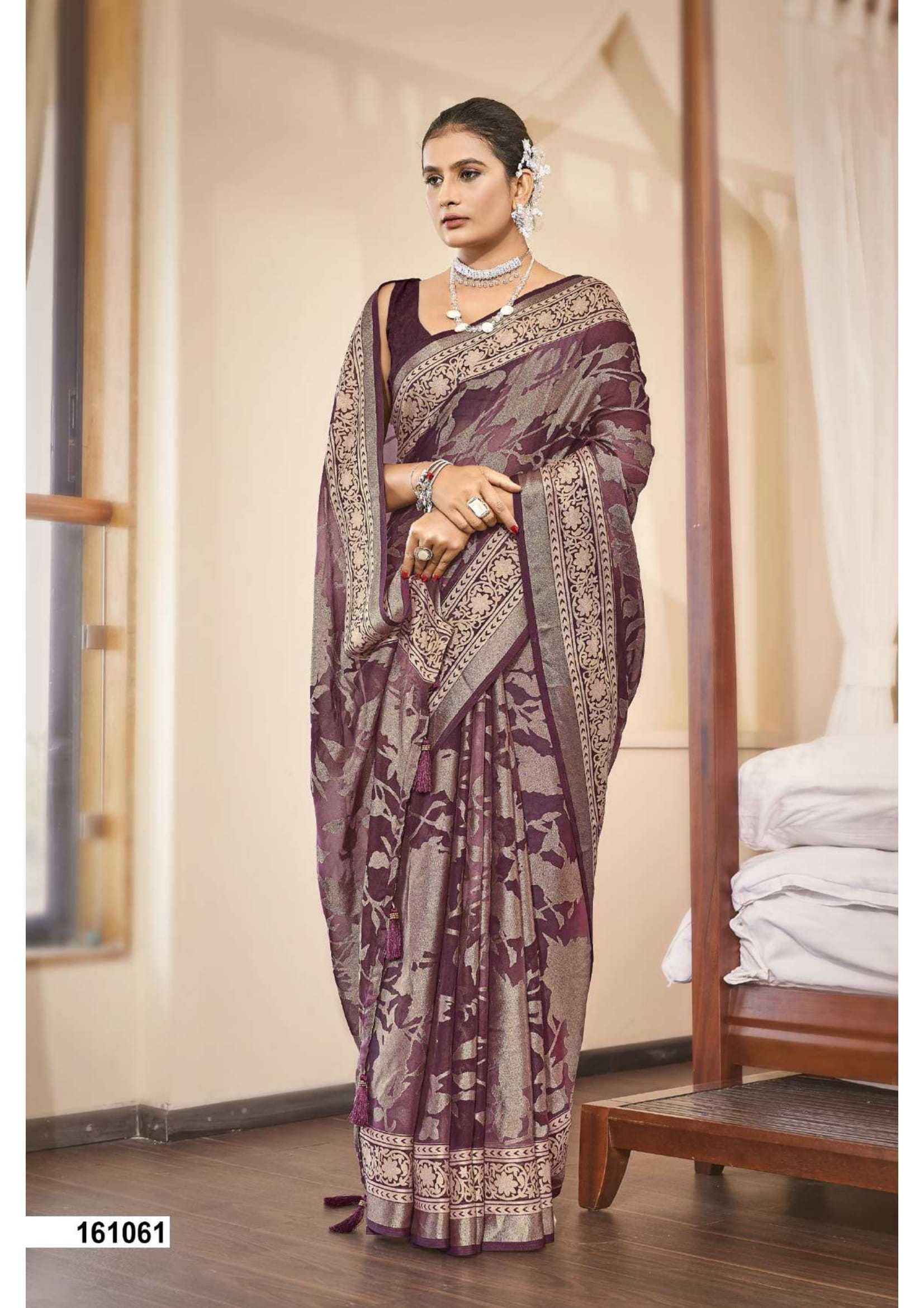 Looking for vallabhi prints umananda brasso party wear exclusive saree with blouse Full Catalouge at Best Price? Buy Now vallabhi prints umananda brasso party wear exclusive saree with blouse at Wholesale Rate of Rs 6090 with Total 6 Pcs from authroized dealer and supplier of Vallabhi Prints Brand. Cost of Each piece is just only Rs 1015 which is very low and affordable price to resale the product in your retail store. rrgandhi is Surat based Wholesale Supplier & Dealer of Vallabhi Prints Brand. Click on Brand name to Know more about Brand's products.