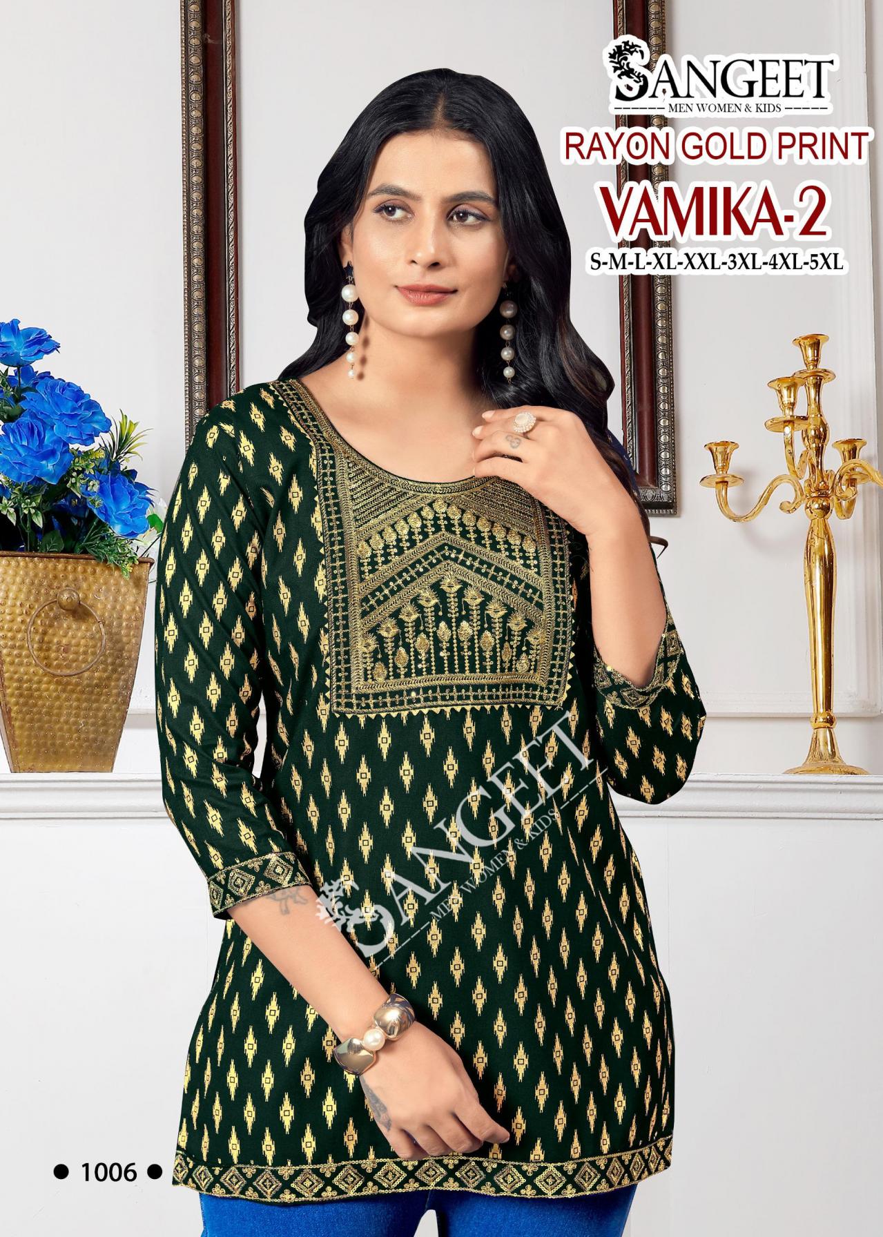 Looking for VAMIKA VOL 2 READYMADE RAYON GOLD PRINT BIG SIZE KURTI Full Catalouge at Best Price? Buy Now VAMIKA VOL 2 READYMADE RAYON GOLD PRINT BIG SIZE KURTI at Wholesale Rate of Rs 1800 with Total 6 Pcs from authroized dealer and supplier of P R Clothing Brand. Cost of Each piece is just only Rs 300 which is very low and affordable price to resale the product in your retail store. rrgandhi is Surat based Wholesale Supplier & Dealer of P R Clothing Brand. Click on Brand name to Know more about Brand's products.
