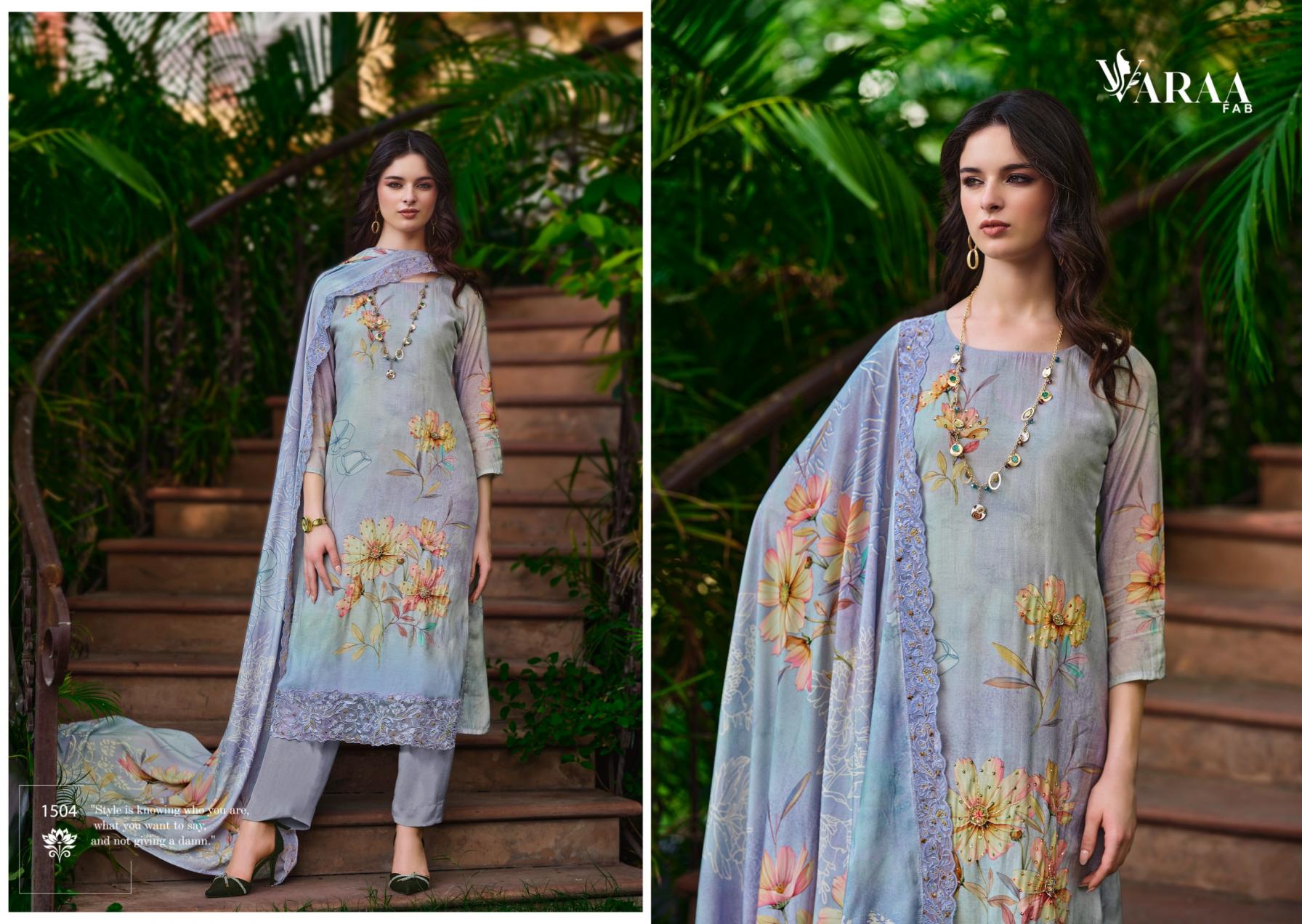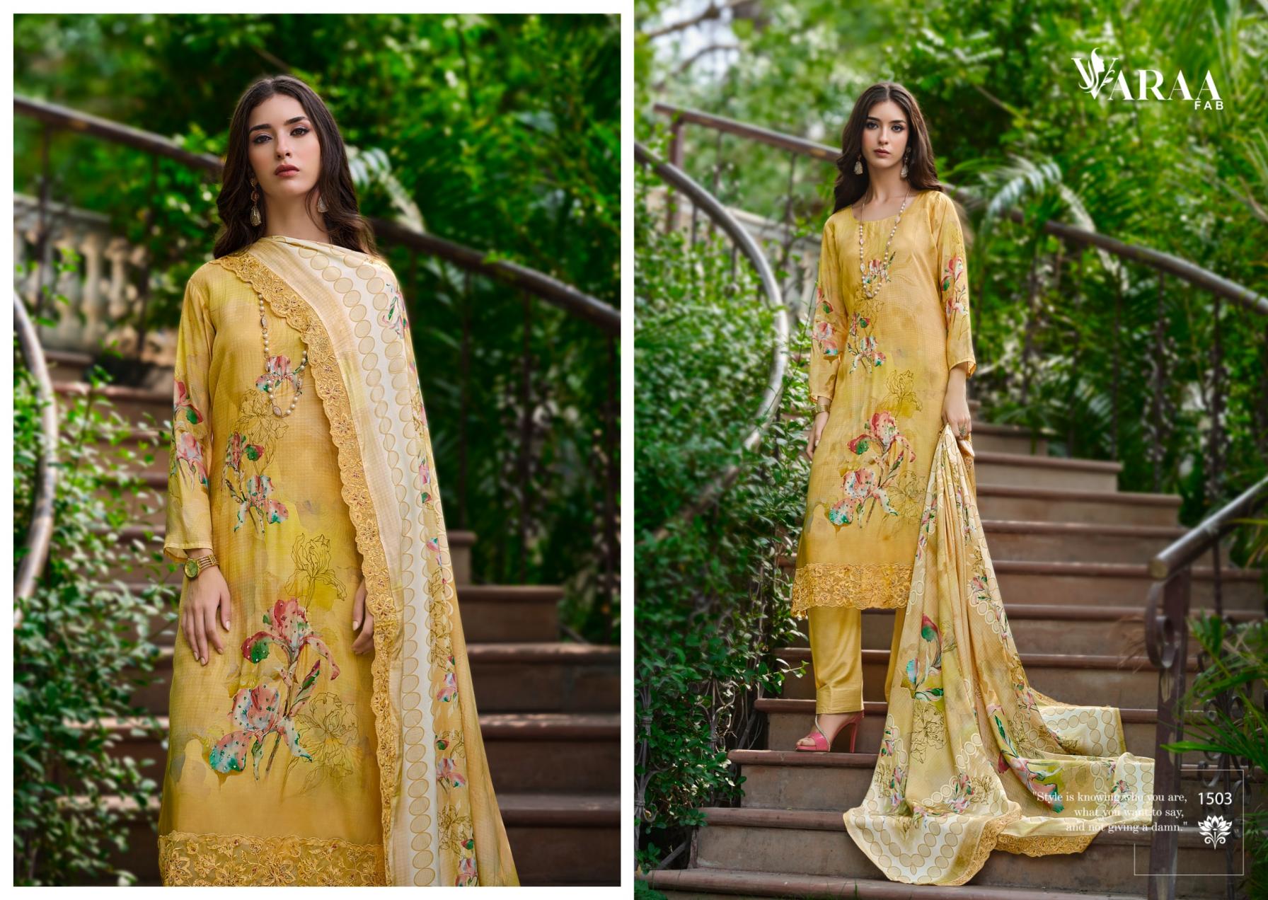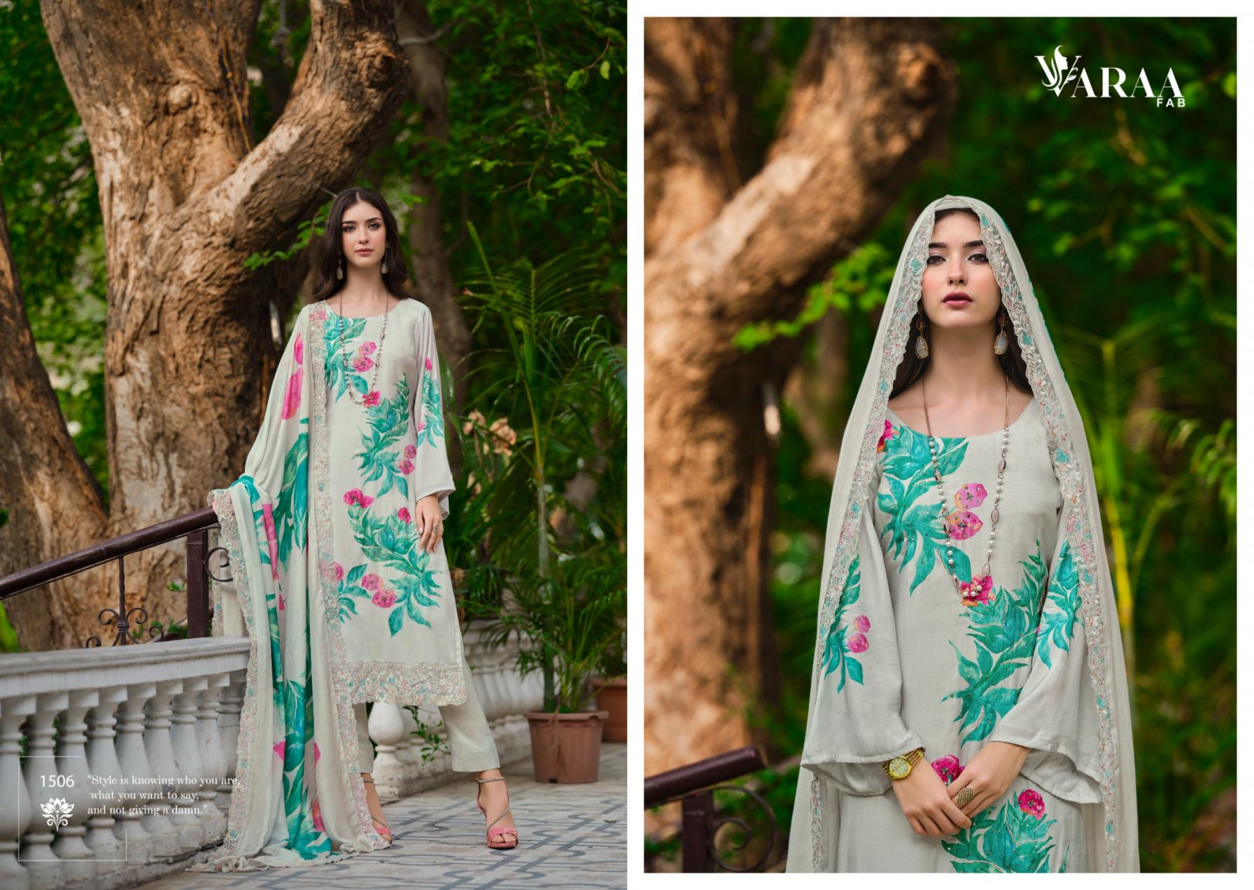 Looking for VARAA FAB IKISHA VISCOSE MUSLIN UNIQUE PAKISTANI SUITS Full Catalouge at Best Price? Buy Now VARAA FAB IKISHA VISCOSE MUSLIN UNIQUE PAKISTANI SUITS at Wholesale Rate of Rs 10740 with Total 6 Pcs from authroized dealer and supplier of Varaa Fab Brand. Cost of Each piece is just only Rs 1790 which is very low and affordable price to resale the product in your retail store. rrgandhi is Surat based Wholesale Supplier & Dealer of Varaa Fab Brand. Click on Brand name to Know more about Brand's products.