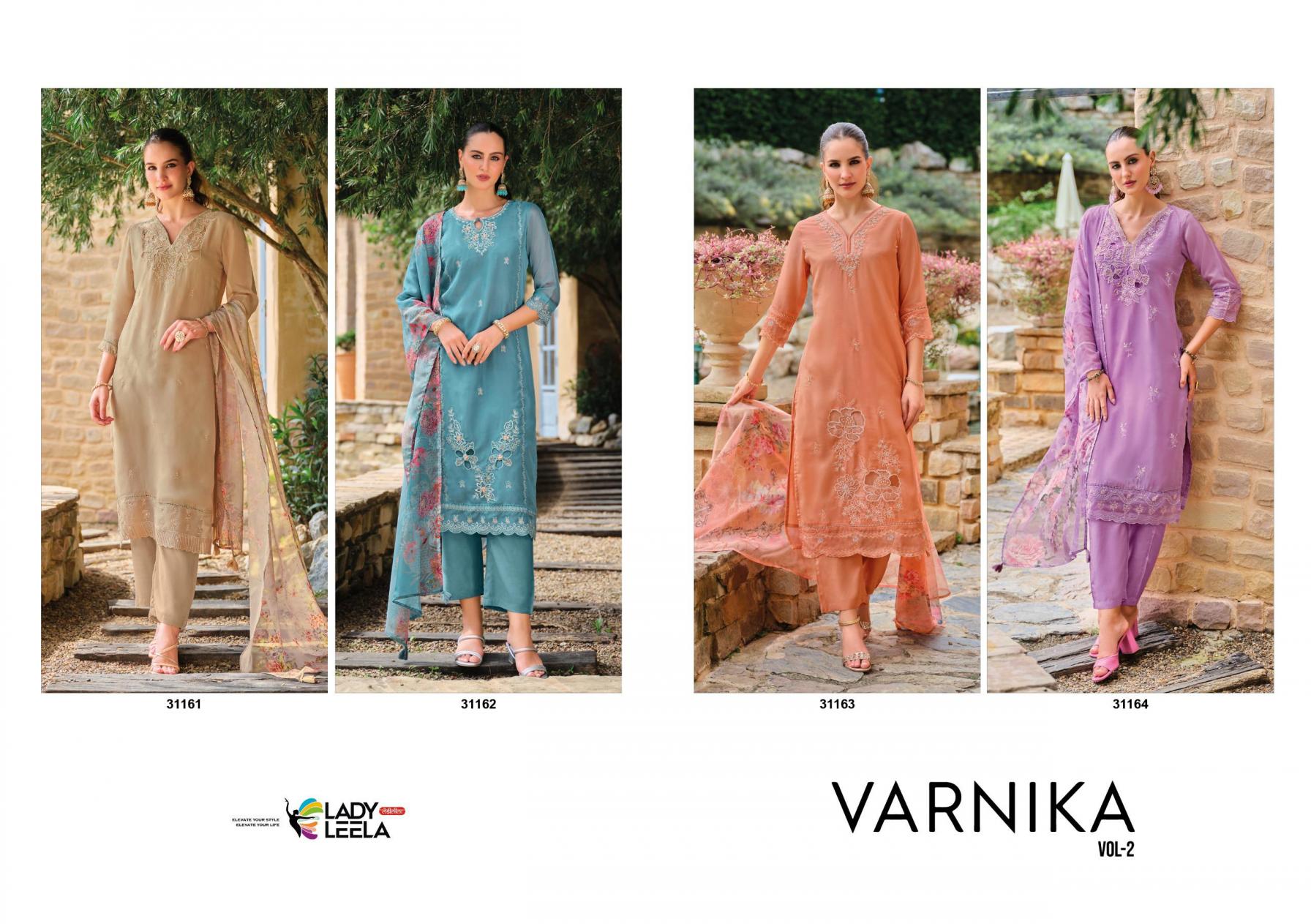 Looking for VARNIKA VOL 2 BY LADY LEELA ORGANZA READYMADE FASHIONABLE SUITS Full Catalouge at Best Price? Buy Now VARNIKA VOL 2 BY LADY LEELA ORGANZA READYMADE FASHIONABLE SUITS at Wholesale Rate of Rs 5580 with Total 4 Pcs from authroized dealer and supplier of Lady Leela Brand. Cost of Each piece is just only Rs 1395 which is very low and affordable price to resale the product in your retail store. rrgandhi is Surat based Wholesale Supplier & Dealer of Lady Leela Brand. Click on Brand name to Know more about Brand's products.