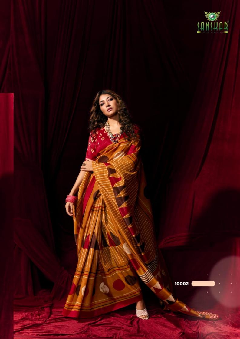 Looking for VERONICA BY SANSKAR TEX PRINTS MANIPURI COTTAN SILK FANCY SAREES Full Catalouge at Best Price? Buy Now VERONICA BY SANSKAR TEX PRINTS MANIPURI COTTAN SILK FANCY SAREES at Wholesale Rate of Rs 5240 with Total 8 Pcs from authroized dealer and supplier of Sanskar Tex Prints Brand. Cost of Each piece is just only Rs 655 which is very low and affordable price to resale the product in your retail store. rrgandhi is Surat based Wholesale Supplier & Dealer of Sanskar Tex Prints Brand. Click on Brand name to Know more about Brand's products.