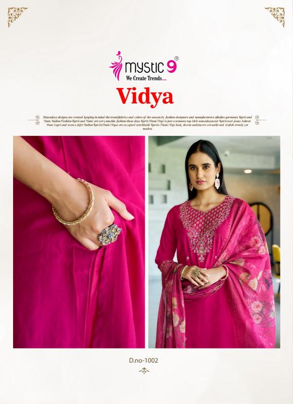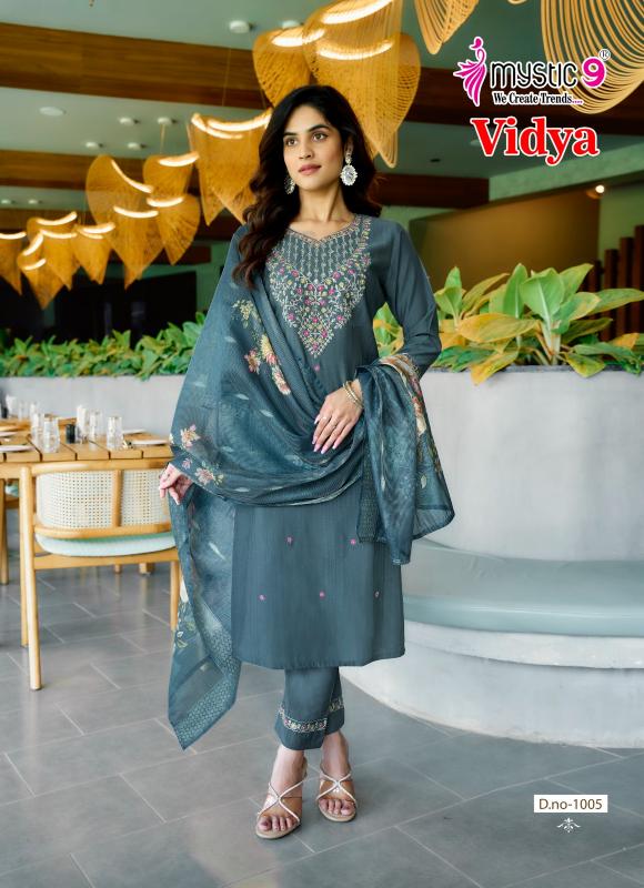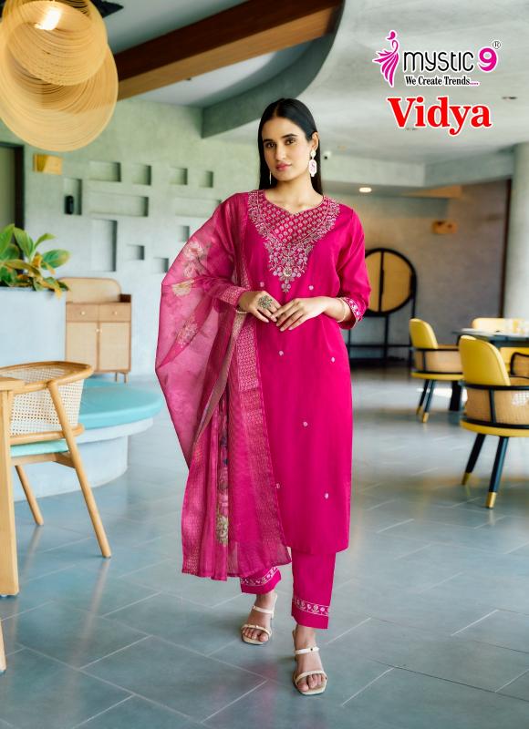 Looking for vidya vol 1 by mystic9 vertican dobby full stitch modern suit online Full Catalouge at Best Price? Buy Now vidya vol 1 by mystic9 vertican dobby full stitch modern suit online at Wholesale Rate of Rs 6120 with Total 8 Pcs from authroized dealer and supplier of Mystic9 Brand. Cost of Each piece is just only Rs 765 which is very low and affordable price to resale the product in your retail store. rrgandhi is Surat based Wholesale Supplier & Dealer of Mystic9 Brand. Click on Brand name to Know more about Brand's products.