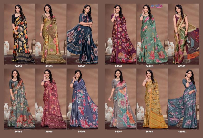 Looking for vipul akasaa 86958 - 86869 unique colours satin silk saree with blouse Full Catalouge at Best Price? Buy Now vipul akasaa 86958 - 86869 unique colours satin silk saree with blouse at Wholesale Rate of Rs 15096 with Total 12 Pcs from authroized dealer and supplier of Vipul Fashion Brand. Cost of Each piece is just only Rs 1258 which is very low and affordable price to resale the product in your retail store. rrgandhi is Surat based Wholesale Supplier & Dealer of Vipul Fashion Brand. Click on Brand name to Know more about Brand's products.