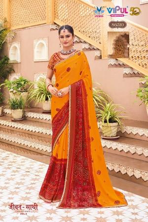 Looking for vipul jeevan saathi vol 2 georgette & chiffon 86508 to 86519 indian saree for ladies Full Catalouge at Best Price? Buy Now vipul jeevan saathi vol 2 georgette & chiffon 86508 to 86519 indian saree for ladies at Wholesale Rate of Rs 11952 with Total 12 Pcs from authroized dealer and supplier of Vipul Fashion Brand. Cost of Each piece is just only Rs 996 which is very low and affordable price to resale the product in your retail store. rrgandhi is Surat based Wholesale Supplier & Dealer of Vipul Fashion Brand. Click on Brand name to Know more about Brand's products.