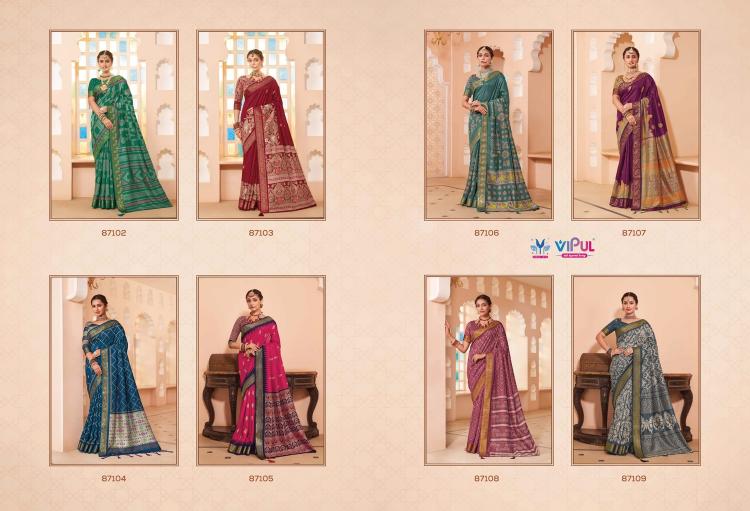 Looking for vipul launch kalyanam silk 87102-87109 best saree online Full Catalouge at Best Price? Buy Now vipul launch kalyanam silk 87102-87109 best saree online at Wholesale Rate of Rs 6168 with Total 8 Pcs from authroized dealer and supplier of Vipul Fashion Brand. Cost of Each piece is just only Rs 771 which is very low and affordable price to resale the product in your retail store. rrgandhi is Surat based Wholesale Supplier & Dealer of Vipul Fashion Brand. Click on Brand name to Know more about Brand's products.
