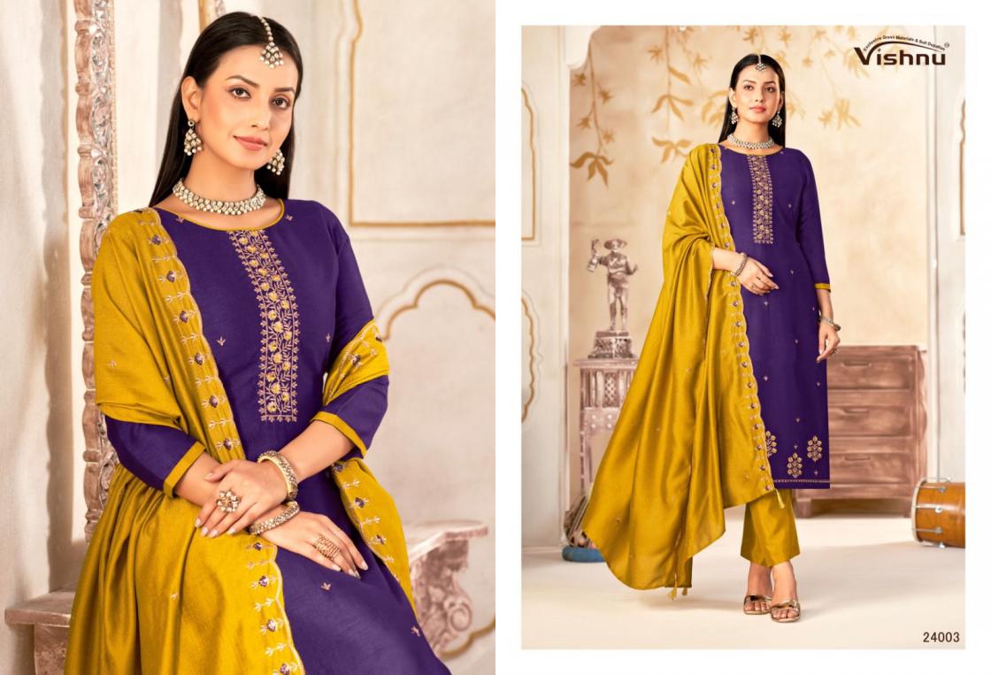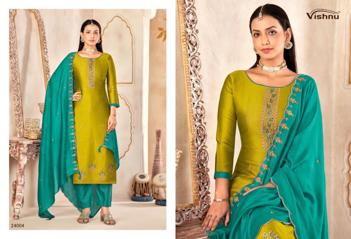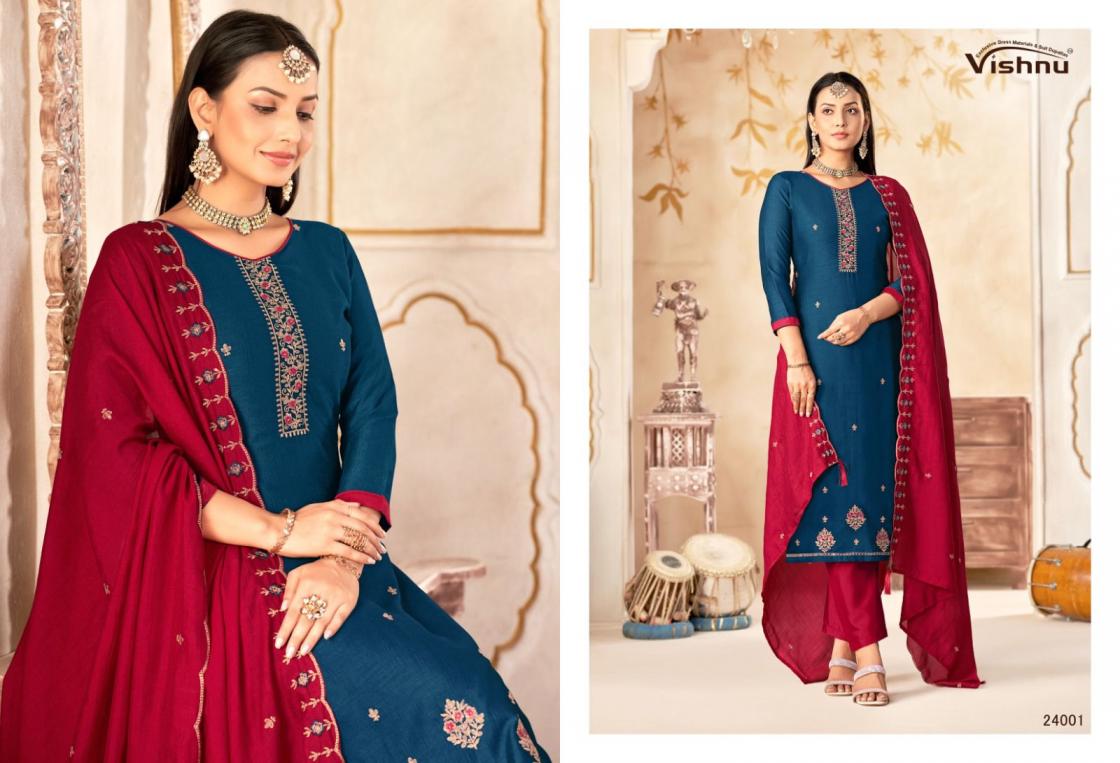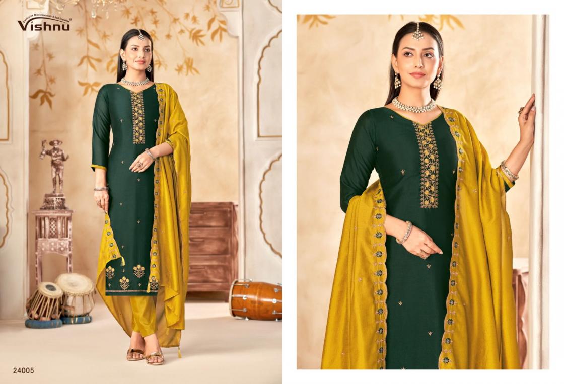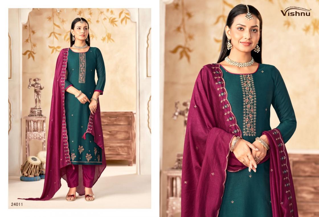 Looking for VISHNU IMPEX MAHARANG VICHITRA SILK CLASSIC UNSTITCH SUITS Full Catalouge at Best Price? Buy Now VISHNU IMPEX MAHARANG VICHITRA SILK CLASSIC UNSTITCH SUITS at Wholesale Rate of Rs 8340 with Total 12 Pcs from authroized dealer and supplier of Vishnu Brand. Cost of Each piece is just only Rs 695 which is very low and affordable price to resale the product in your retail store. rrgandhi is Surat based Wholesale Supplier & Dealer of Vishnu Brand. Click on Brand name to Know more about Brand's products.