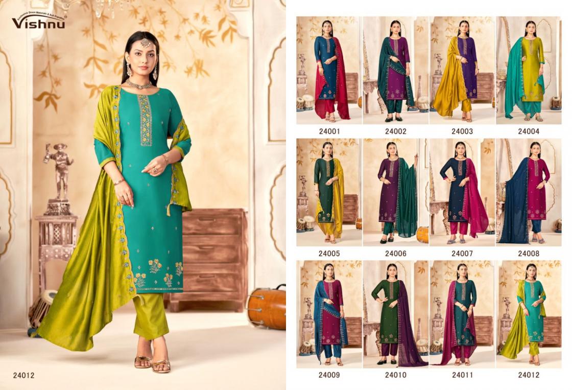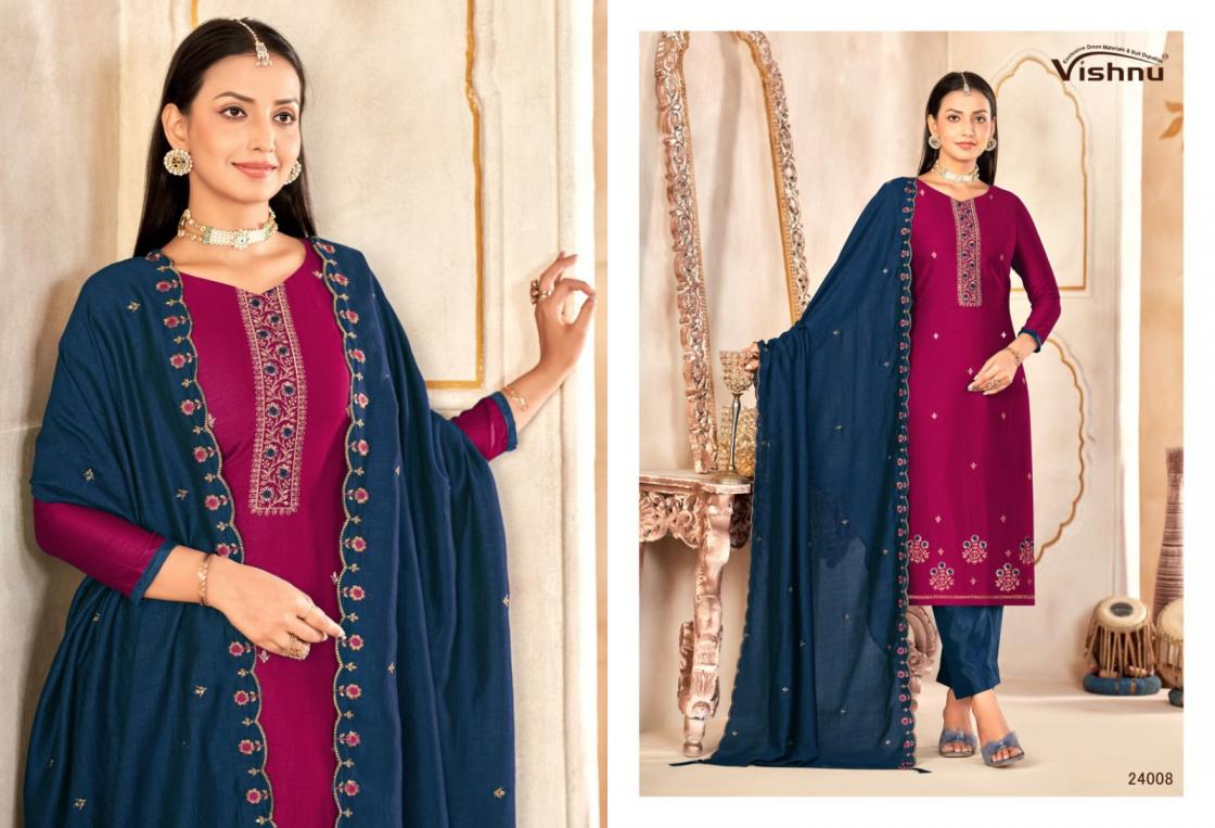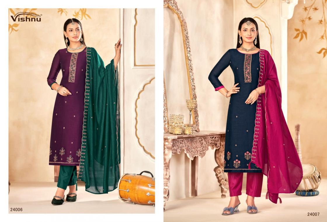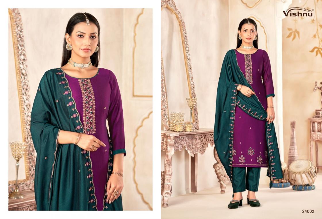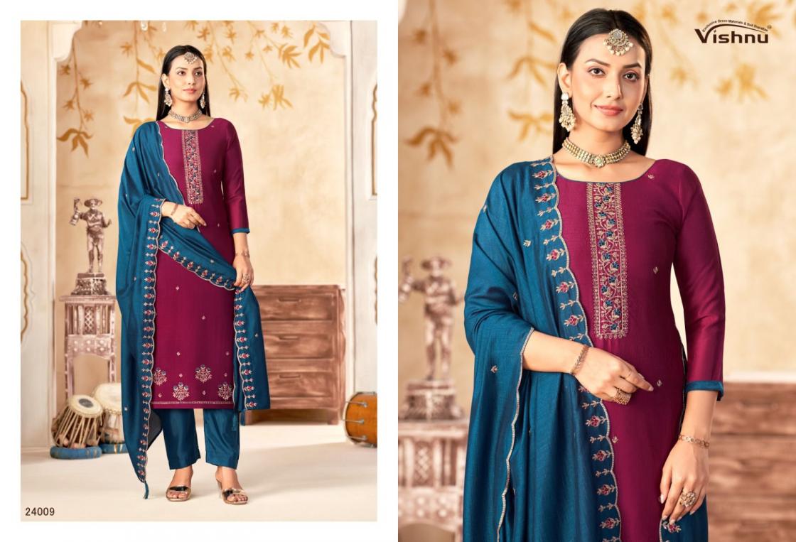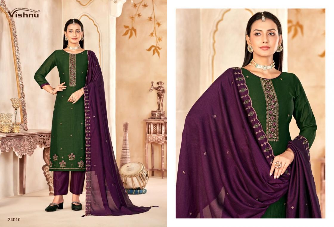 Looking for VISHNU IMPEX MAHARANG VICHITRA SILK CLASSIC UNSTITCH SUITS Full Catalouge at Best Price? Buy Now VISHNU IMPEX MAHARANG VICHITRA SILK CLASSIC UNSTITCH SUITS at Wholesale Rate of Rs 8340 with Total 12 Pcs from authroized dealer and supplier of Vishnu Brand. Cost of Each piece is just only Rs 695 which is very low and affordable price to resale the product in your retail store. rrgandhi is Surat based Wholesale Supplier & Dealer of Vishnu Brand. Click on Brand name to Know more about Brand's products.