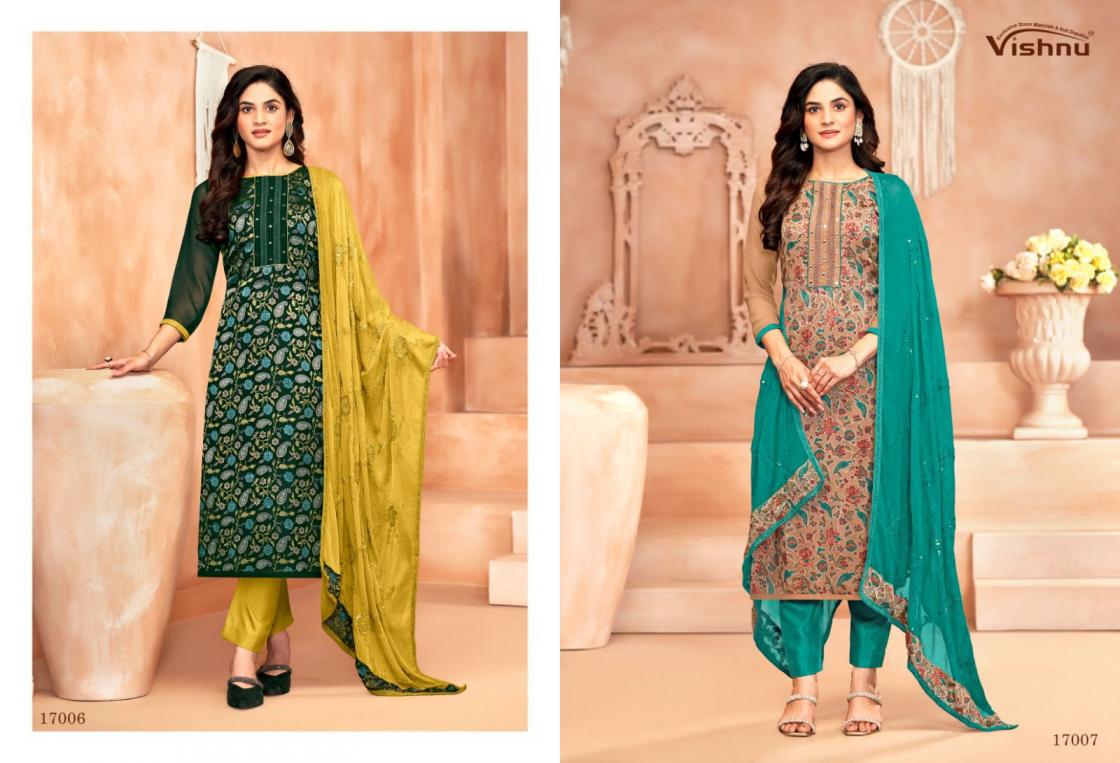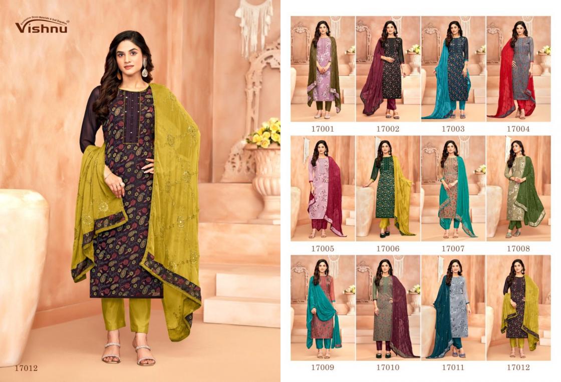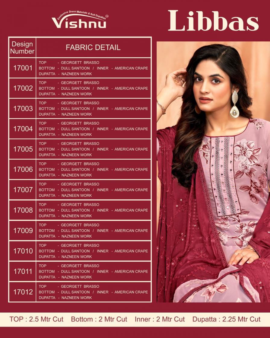 Looking for vishnu libbas casual wear georgette brasso suit for womens Full Catalouge at Best Price? Buy Now vishnu libbas casual wear georgette brasso suit for womens at Wholesale Rate of Rs 9540 with Total 12 Pcs from authroized dealer and supplier of Vishnu Brand. Cost of Each piece is just only Rs 795 which is very low and affordable price to resale the product in your retail store. rrgandhi is Surat based Wholesale Supplier & Dealer of Vishnu Brand. Click on Brand name to Know more about Brand's products.