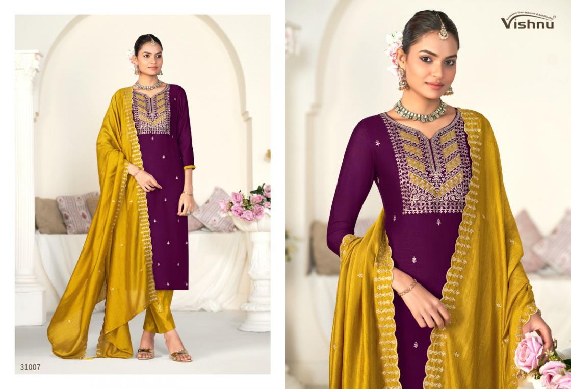 Looking for VISHNU SANWALI VOL 2 VICHITRA SILK UNIQUE SUIT FOR WOMENS Full Catalouge at Best Price? Buy Now VISHNU SANWALI VOL 2 VICHITRA SILK UNIQUE SUIT FOR WOMENS at Wholesale Rate of Rs 8340 with Total 12 Pcs from authroized dealer and supplier of Vishnu Brand. Cost of Each piece is just only Rs 695 which is very low and affordable price to resale the product in your retail store. rrgandhi is Surat based Wholesale Supplier & Dealer of Vishnu Brand. Click on Brand name to Know more about Brand's products.