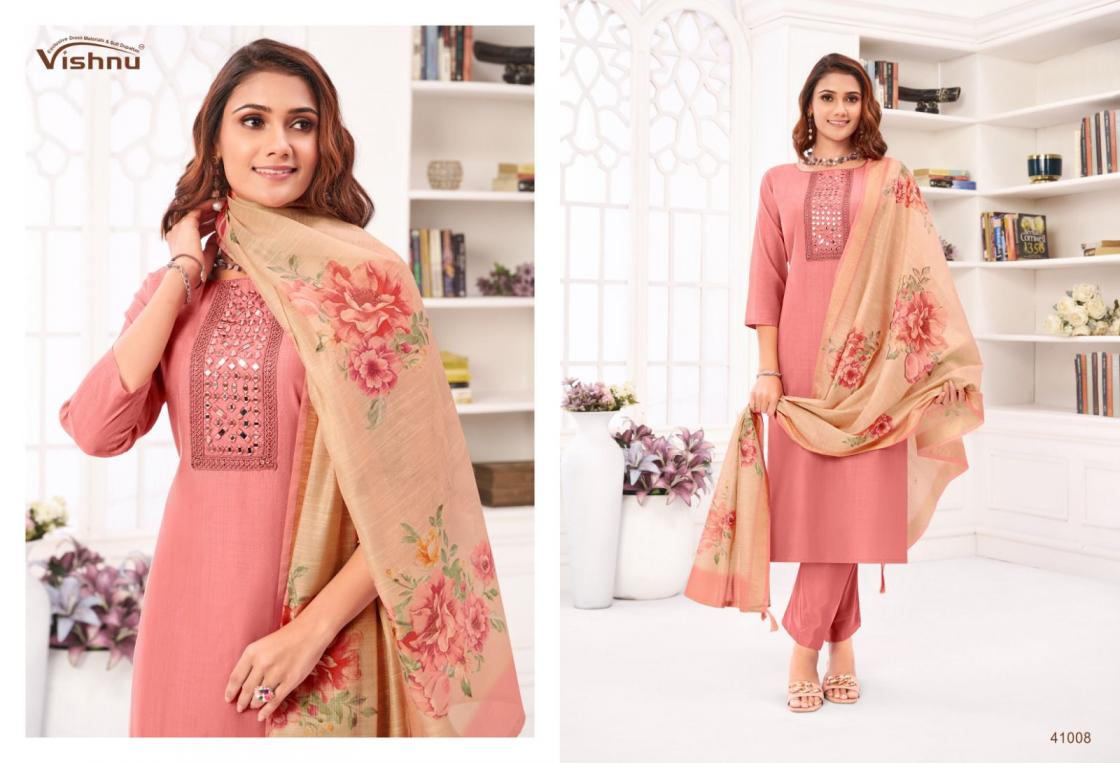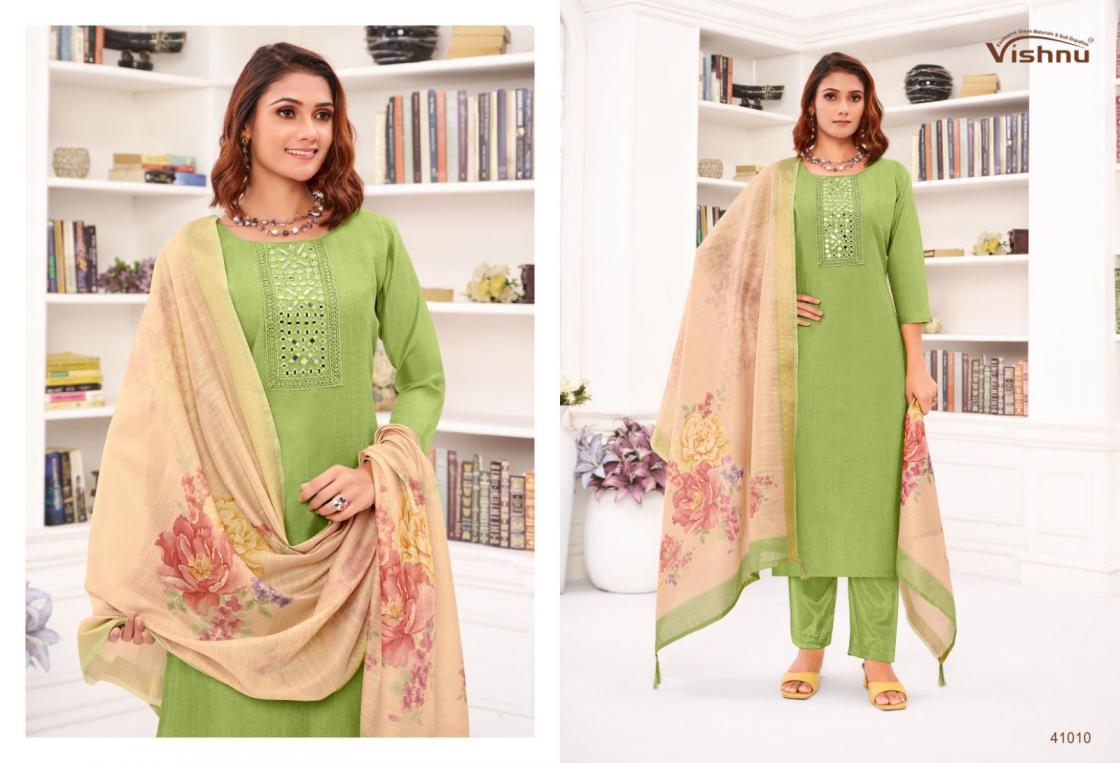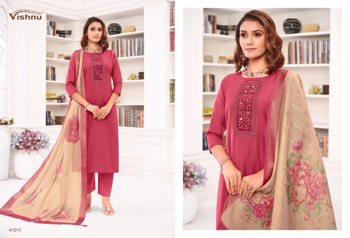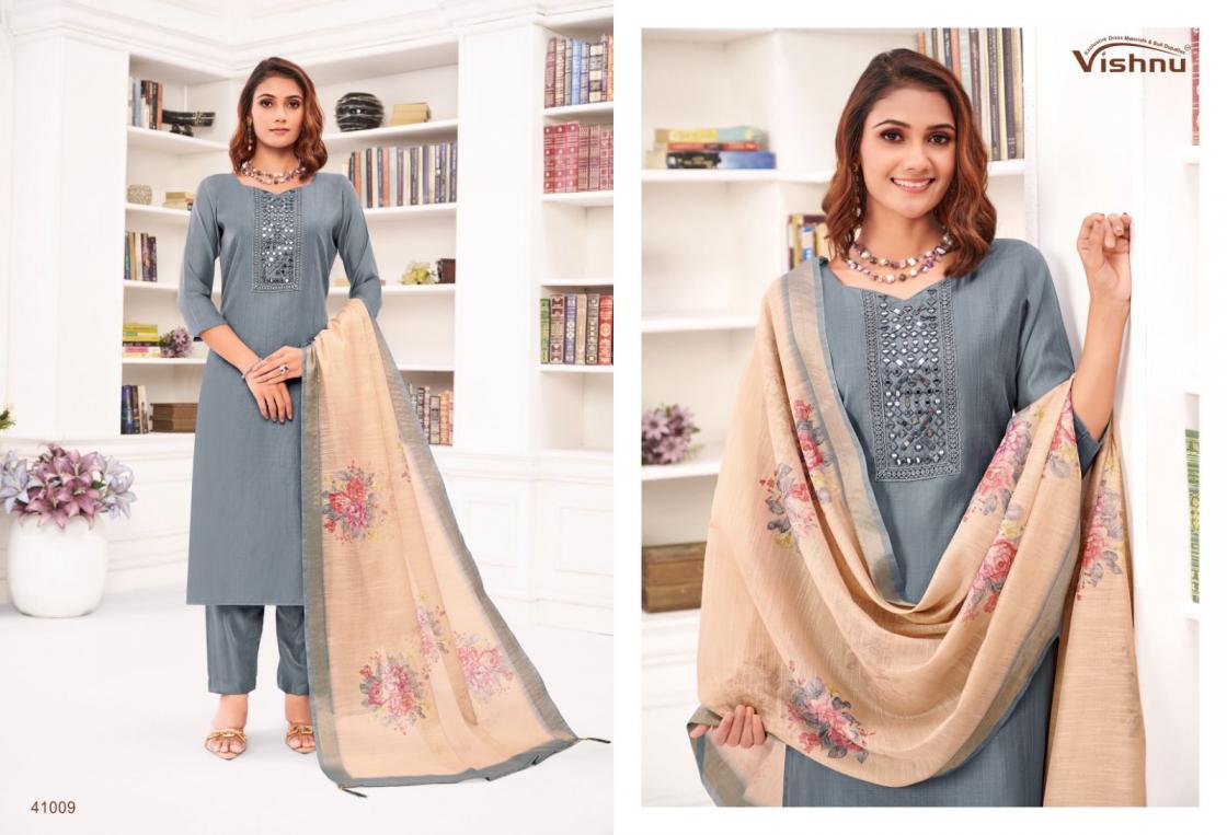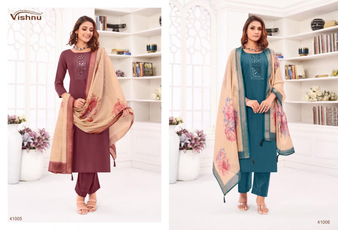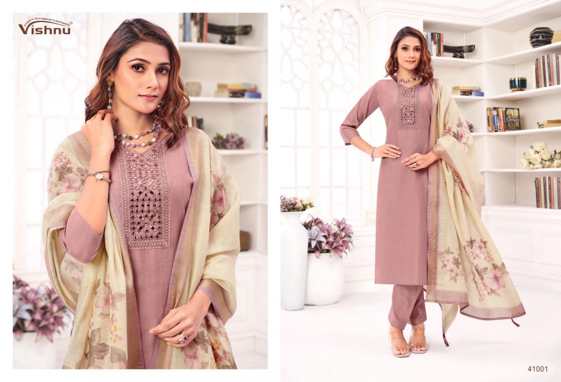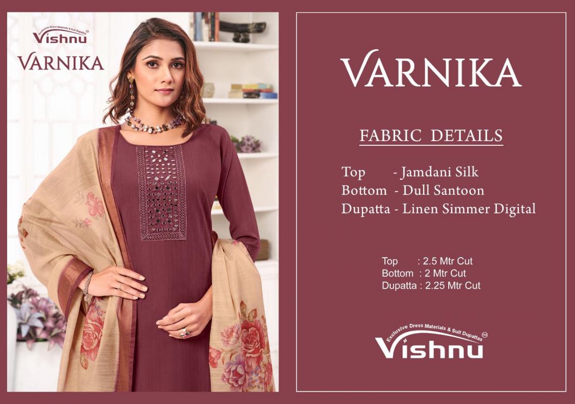 Looking for VISHNU VERNIKA AMAZING JAMDANI SILK FANCY SALWAR KAMEEZ Full Catalouge at Best Price? Buy Now VISHNU VERNIKA AMAZING JAMDANI SILK FANCY SALWAR KAMEEZ at Wholesale Rate of Rs 8340 with Total 12 Pcs from authroized dealer and supplier of Vishnu Brand. Cost of Each piece is just only Rs 695 which is very low and affordable price to resale the product in your retail store. rrgandhi is Surat based Wholesale Supplier & Dealer of Vishnu Brand. Click on Brand name to Know more about Brand's products.