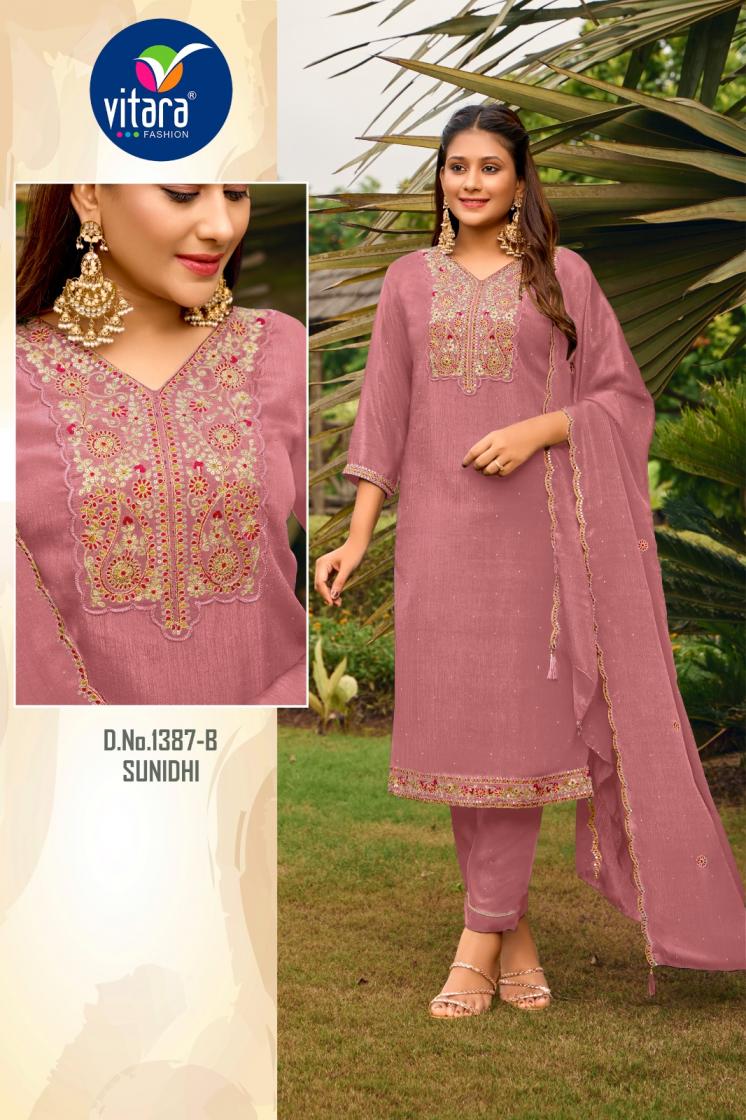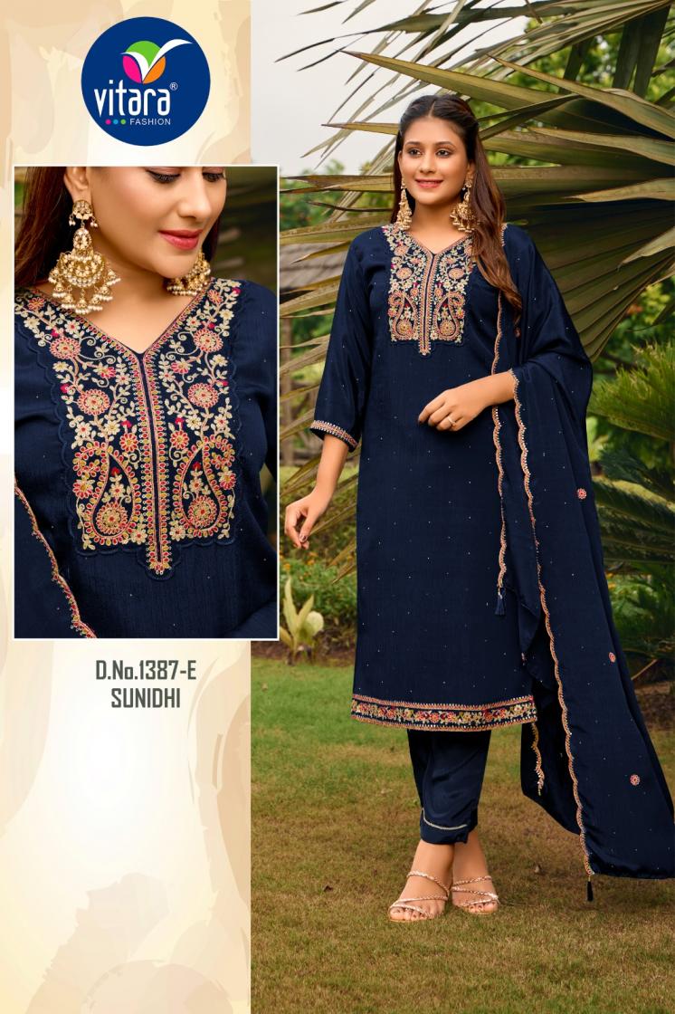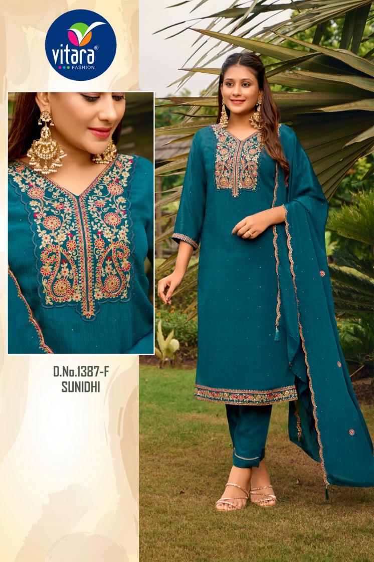 Looking for VITARA FASHION SUNIDHI CHINON FULLY STITCH COMBO SALWAR KAMEEZ Full Catalouge at Best Price? Buy Now VITARA FASHION SUNIDHI CHINON FULLY STITCH COMBO SALWAR KAMEEZ at Wholesale Rate of Rs 30560 with Total 32 Pcs from authroized dealer and supplier of Vitara Fashion Brand. Cost of Each piece is just only Rs 955 which is very low and affordable price to resale the product in your retail store. rrgandhi is Surat based Wholesale Supplier & Dealer of Vitara Fashion Brand. Click on Brand name to Know more about Brand's products.