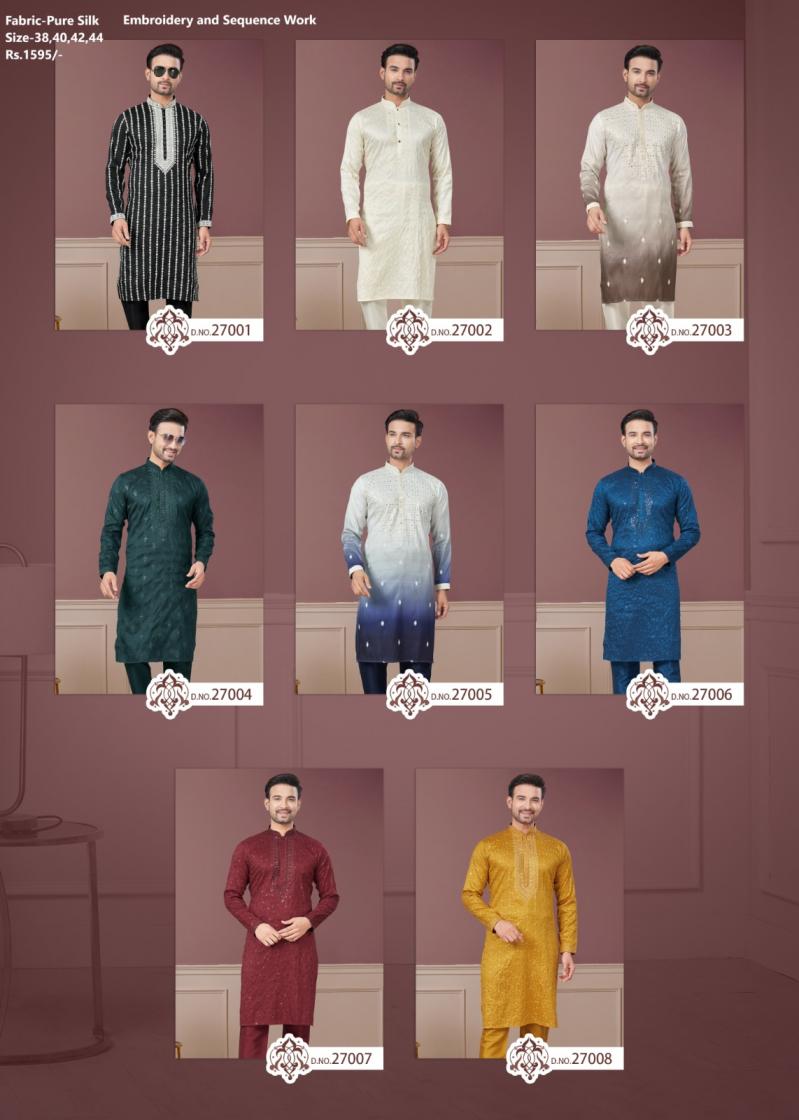 Looking for WEDDING COLLECTION VOL 27 BY OUTLUK SILK CLASSIC FULL STITCH MENS KURTA PAJAMA Full Catalouge at Best Price? Buy Now WEDDING COLLECTION VOL 27 BY OUTLUK SILK CLASSIC FULL STITCH MENS KURTA PAJAMA at Wholesale Rate of Rs 12760 with Total 8 Pcs from authroized dealer and supplier of Outluk Brand. Cost of Each piece is just only Rs 1595 which is very low and affordable price to resale the product in your retail store. rrgandhi is Surat based Wholesale Supplier & Dealer of Outluk Brand. Click on Brand name to Know more about Brand's products.
