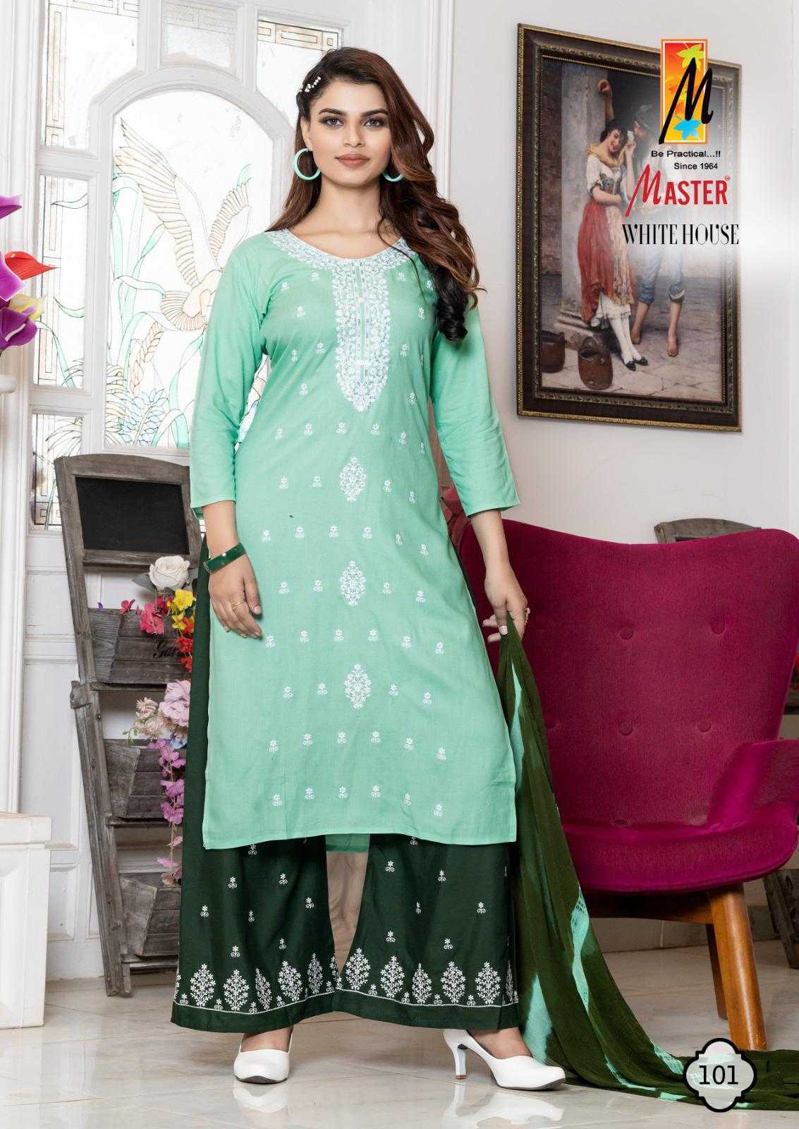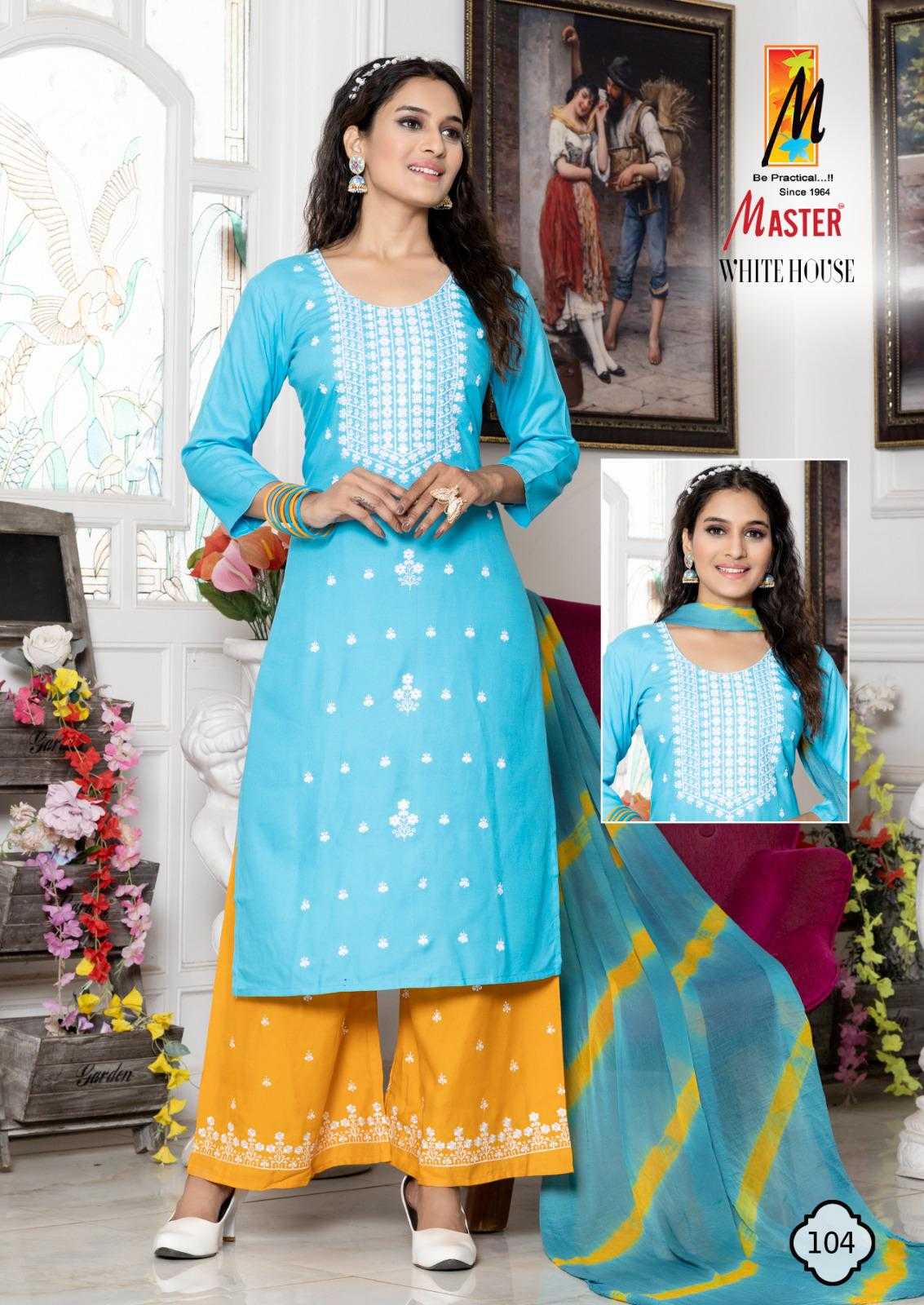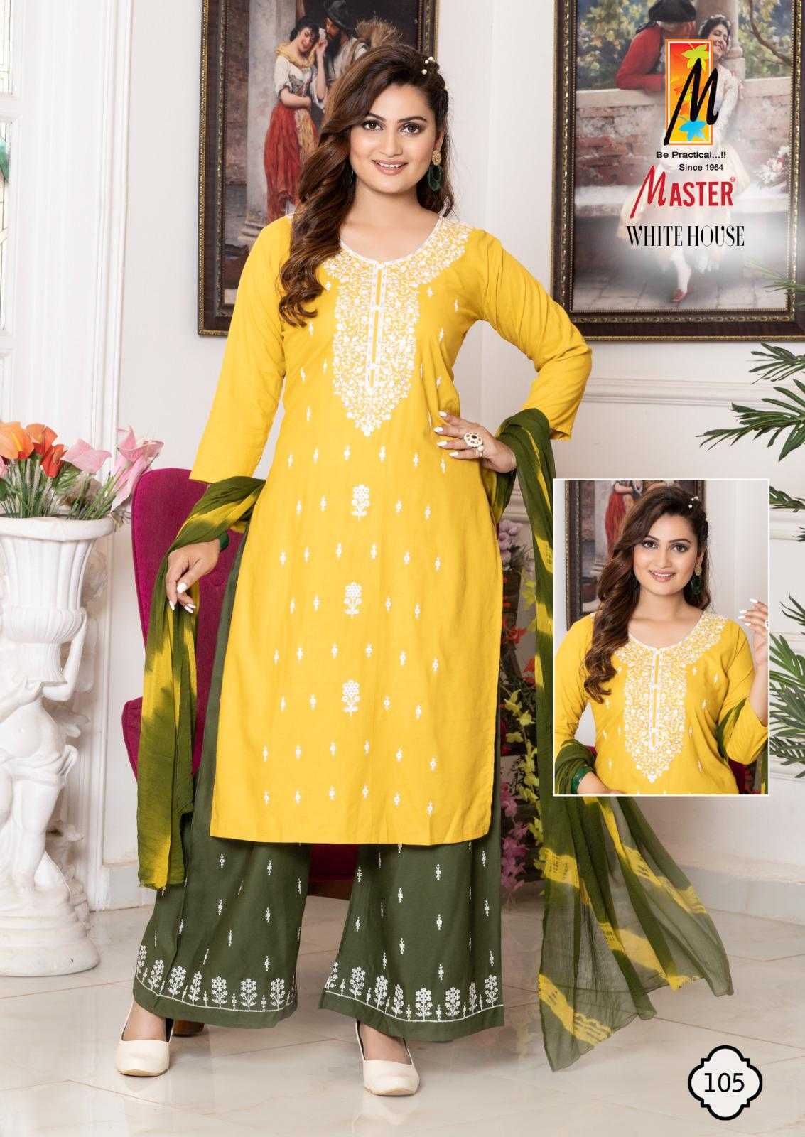 Looking for white house by master rayon new trendy plus size salwar kameez exports Full Catalouge at Best Price? Buy Now white house by master rayon new trendy plus size salwar kameez exports at Wholesale Rate of Rs 4600 with Total 8 Pcs from authroized dealer and supplier of Master Kurti Brand. Cost of Each piece is just only Rs 575 which is very low and affordable price to resale the product in your retail store. rrgandhi is Surat based Wholesale Supplier & Dealer of Master Kurti Brand. Click on Brand name to Know more about Brand's products.
