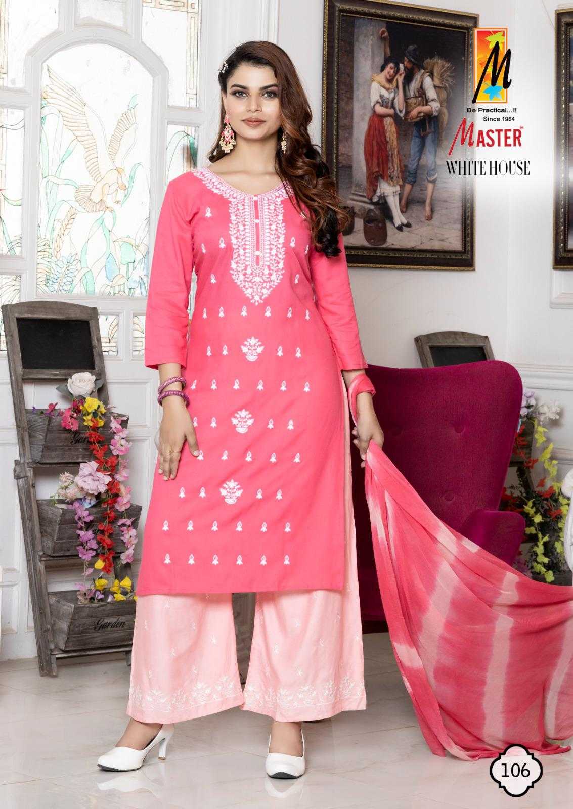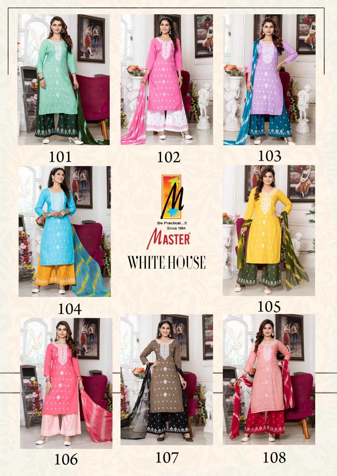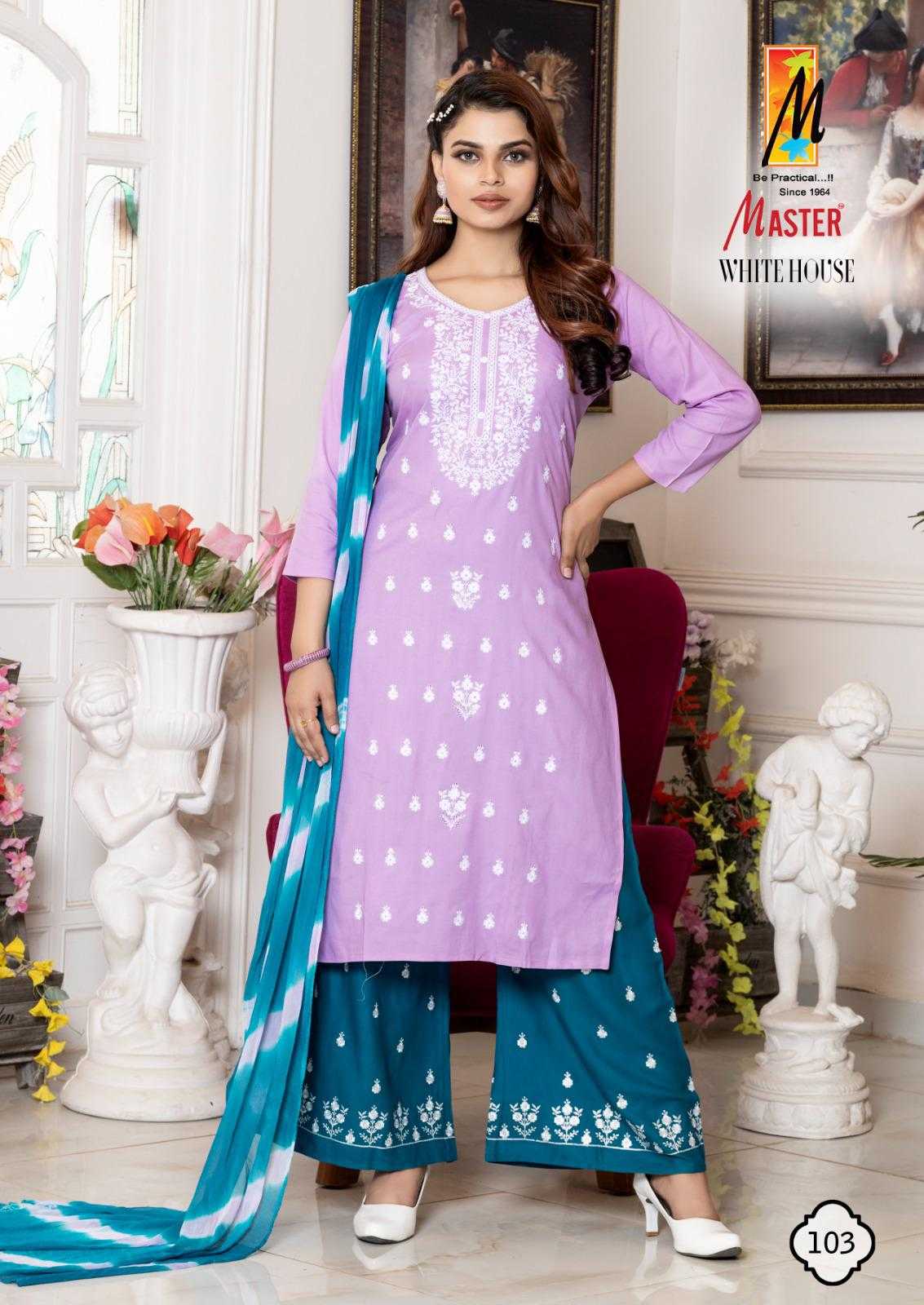 Looking for white house by master rayon new trendy plus size salwar kameez exports Full Catalouge at Best Price? Buy Now white house by master rayon new trendy plus size salwar kameez exports at Wholesale Rate of Rs 4600 with Total 8 Pcs from authroized dealer and supplier of Master Kurti Brand. Cost of Each piece is just only Rs 575 which is very low and affordable price to resale the product in your retail store. rrgandhi is Surat based Wholesale Supplier & Dealer of Master Kurti Brand. Click on Brand name to Know more about Brand's products.