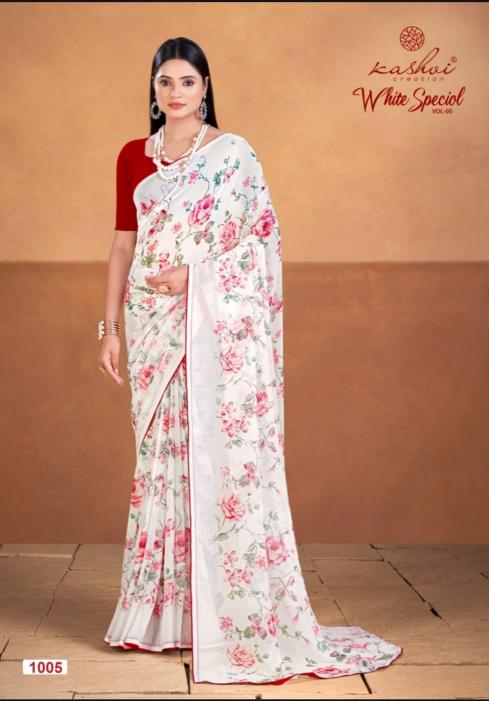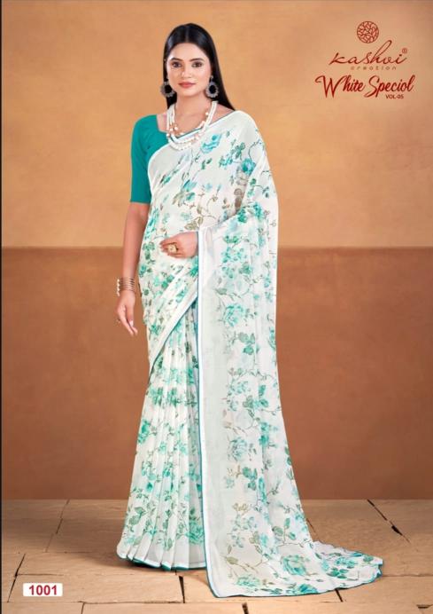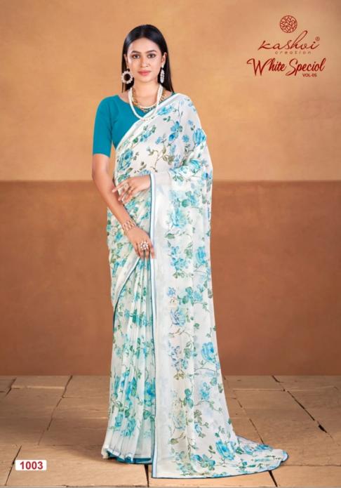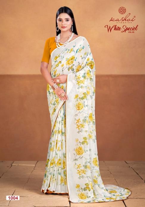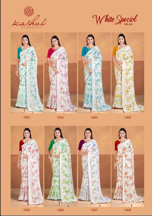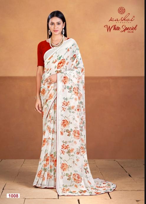 Looking for white special vol 5 by krishna creation beautiful printed georgette saree wholesale Full Catalouge at Best Price? Buy Now white special vol 5 by krishna creation beautiful printed georgette saree wholesale at Wholesale Rate of Rs 4360 with Total 8 Pcs from authroized dealer and supplier of Kashvi Creation Brand. Cost of Each piece is just only Rs 545 which is very low and affordable price to resale the product in your retail store. rrgandhi is Surat based Wholesale Supplier & Dealer of Kashvi Creation Brand. Click on Brand name to Know more about Brand's products.