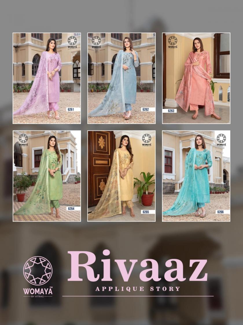 Looking for WOMAYA RIVAAZ APPLIQUE STORY MODAL SILK PRETTY COMBO SUIT FOR WOMENS Full Catalouge at Best Price? Buy Now WOMAYA RIVAAZ APPLIQUE STORY MODAL SILK PRETTY COMBO SUIT FOR WOMENS at Wholesale Rate of Rs 7530 with Total 6 Pcs from authroized dealer and supplier of Womaya Kurtis Brand. Cost of Each piece is just only Rs 1255 which is very low and affordable price to resale the product in your retail store. rrgandhi is Surat based Wholesale Supplier & Dealer of Womaya Kurtis Brand. Click on Brand name to Know more about Brand's products.