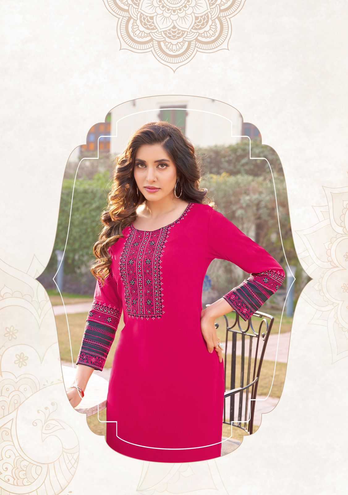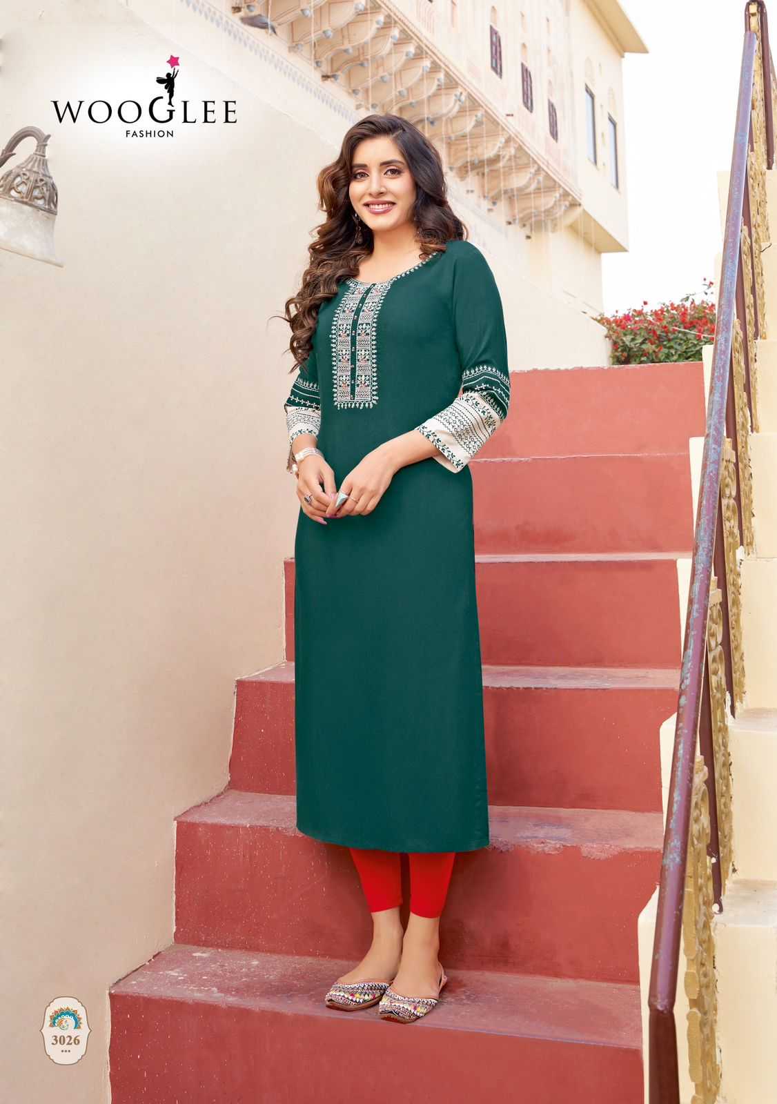 Looking for wooglee launch salonee vol 6 fancy comfy wear rayon thread work long kurti Full Catalouge at Best Price? Buy Now wooglee launch salonee vol 6 fancy comfy wear rayon thread work long kurti at Wholesale Rate of Rs 2760 with Total 6 Pcs from authroized dealer and supplier of Brand. Cost of Each piece is just only Rs 460 which is very low and affordable price to resale the product in your retail store. rrgandhi is Surat based Wholesale Supplier & Dealer of Brand. Click on Brand name to Know more about Brand's products.