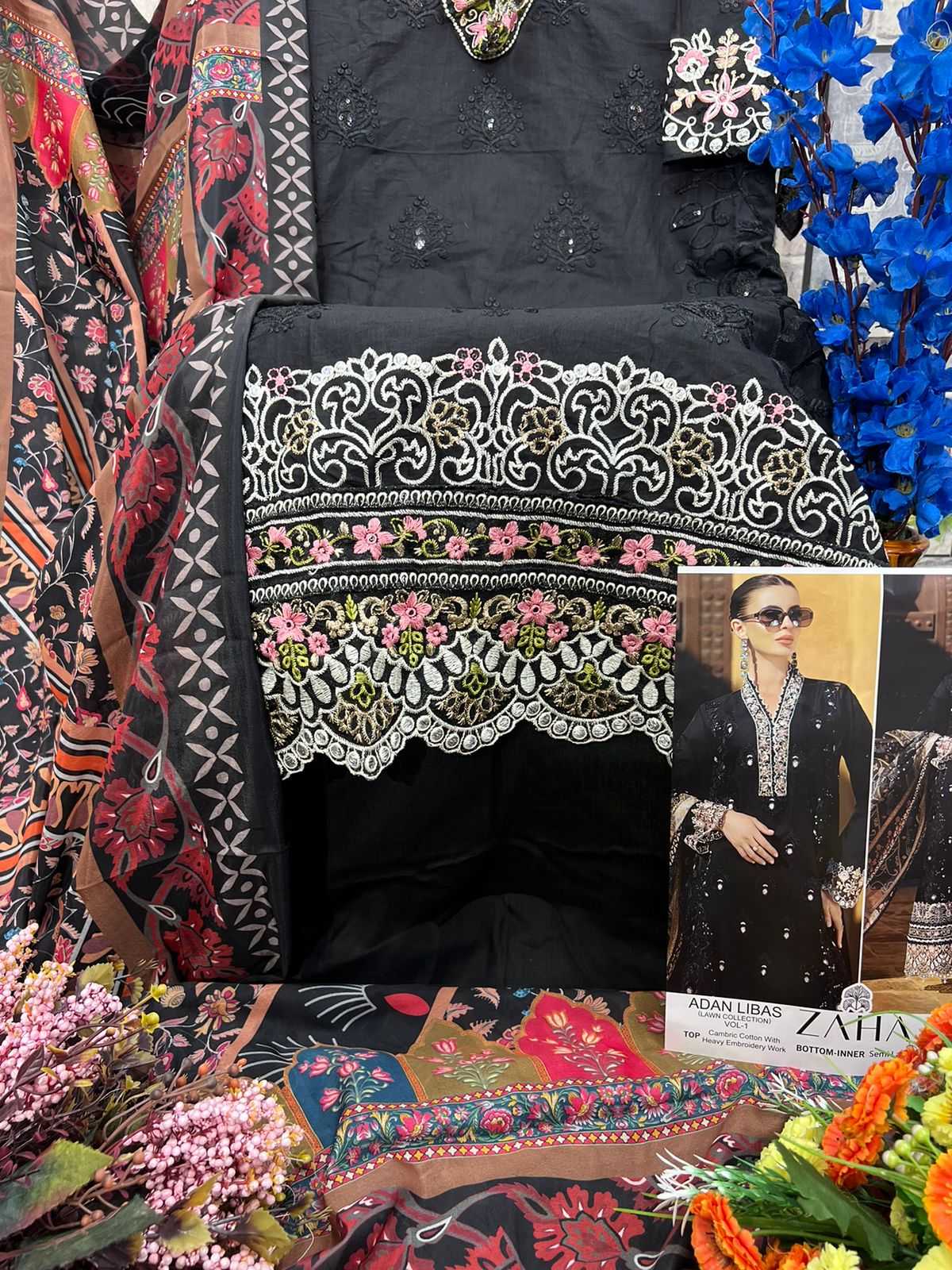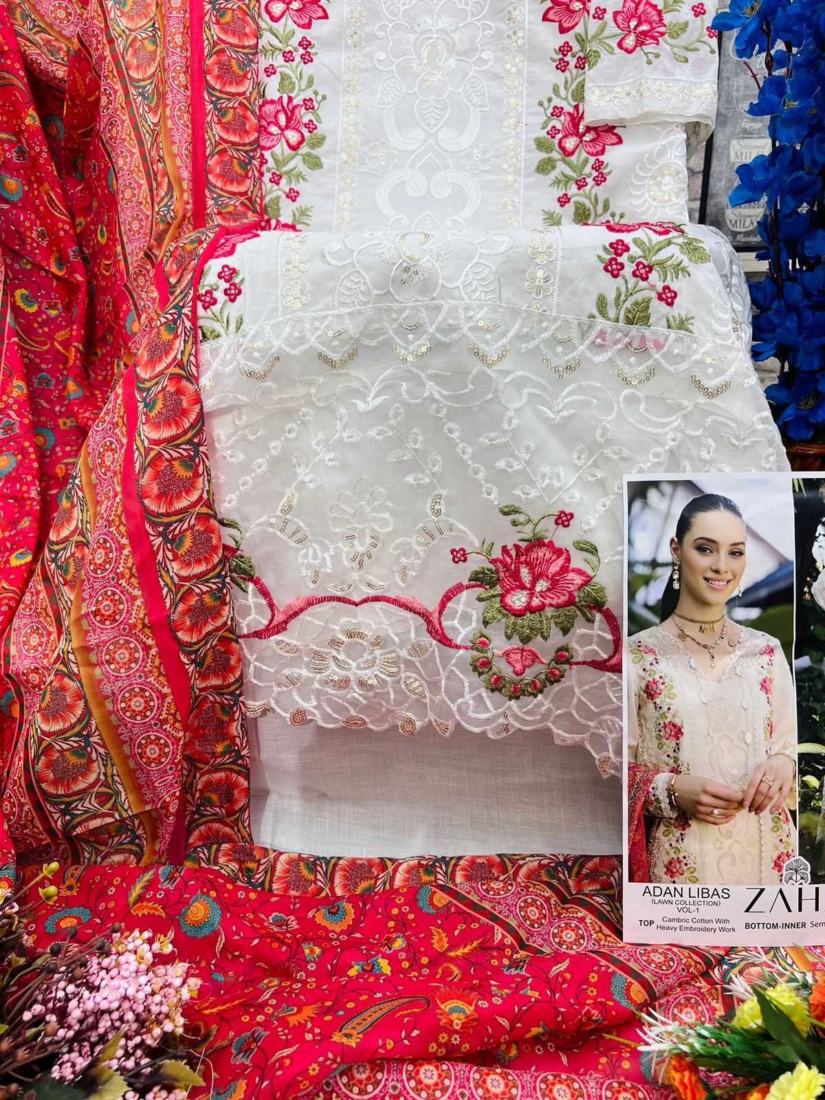 Looking for zaha adan libas fancy lawn collection vol 1party wear cambric cotton pakistani salwar suit Full Catalouge at Best Price? Buy Now zaha adan libas fancy lawn collection vol 1party wear cambric cotton pakistani salwar suit at Wholesale Rate of Rs 3597 with Total 3 Pcs from authroized dealer and supplier of Zaha Brand. Cost of Each piece is just only Rs 1199 which is very low and affordable price to resale the product in your retail store. rrgandhi is Surat based Wholesale Supplier & Dealer of Zaha Brand. Click on Brand name to Know more about Brand's products.