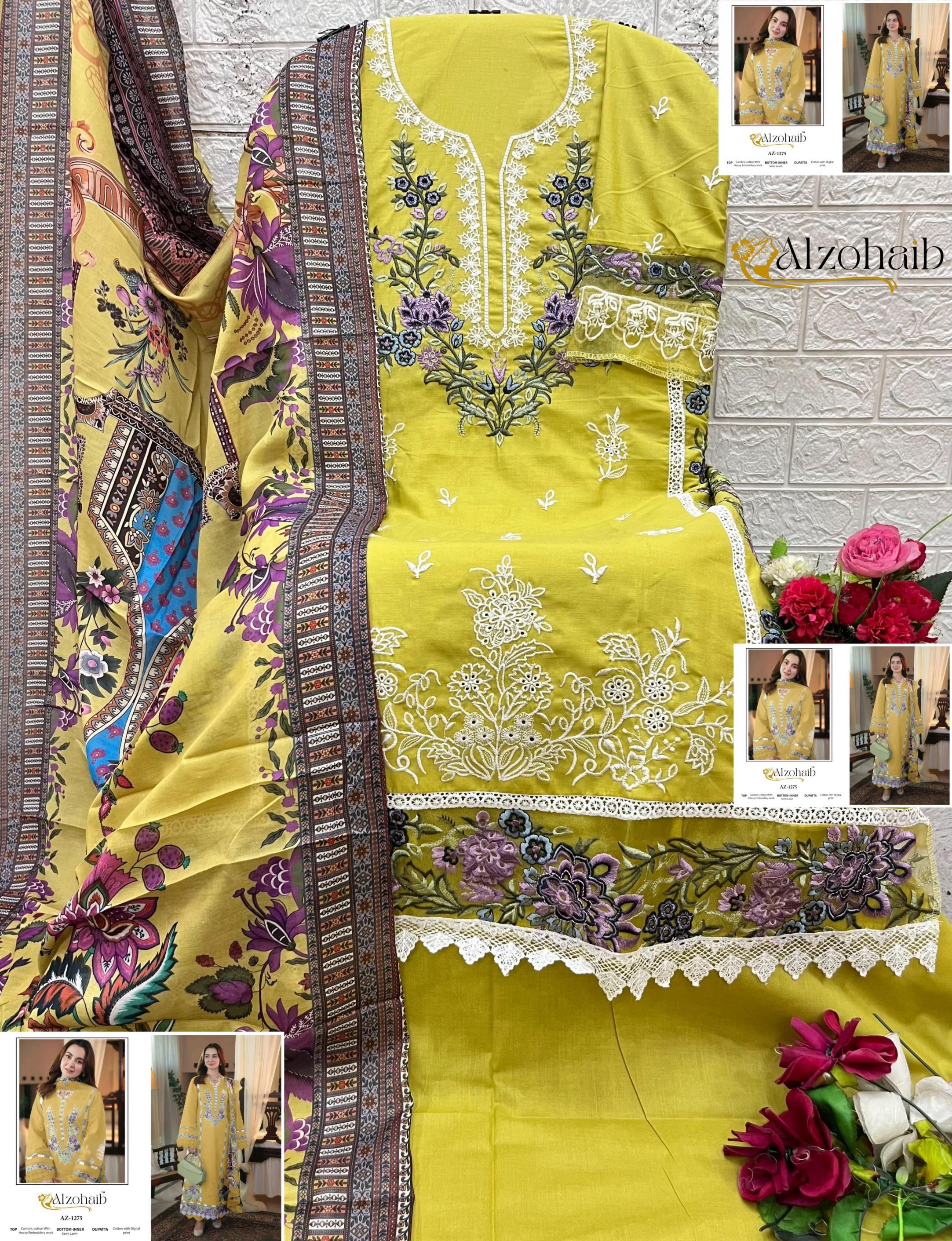 Looking for ZAHRA VOL 3 BY ALZOHAIB COTTON AMAZING PAKISTANI 3PCS DRESS Full Catalouge at Best Price? Buy Now ZAHRA VOL 3 BY ALZOHAIB COTTON AMAZING PAKISTANI 3PCS DRESS at Wholesale Rate of Rs 4495 with Total 5 Pcs from authroized dealer and supplier of Al Zohaib Textile Brand. Cost of Each piece is just only Rs 899 which is very low and affordable price to resale the product in your retail store. rrgandhi is Surat based Wholesale Supplier & Dealer of Al Zohaib Textile Brand. Click on Brand name to Know more about Brand's products.