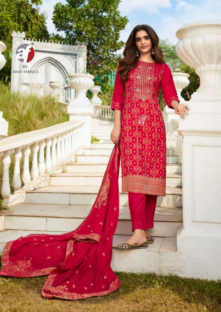 Looking for ZARI BY ANJU FAB DOLA SILK WITH JACQUARD FULL STITCH PARTY WEAR SUITS Full Catalouge at Best Price? Buy Now ZARI BY ANJU FAB DOLA SILK WITH JACQUARD FULL STITCH PARTY WEAR SUITS at Wholesale Rate of Rs 6780 with Total 4 Pcs from authroized dealer and supplier of A F Kurti Brand. Cost of Each piece is just only Rs 1695 which is very low and affordable price to resale the product in your retail store. rrgandhi is Surat based Wholesale Supplier & Dealer of A F Kurti Brand. Click on Brand name to Know more about Brand's products.