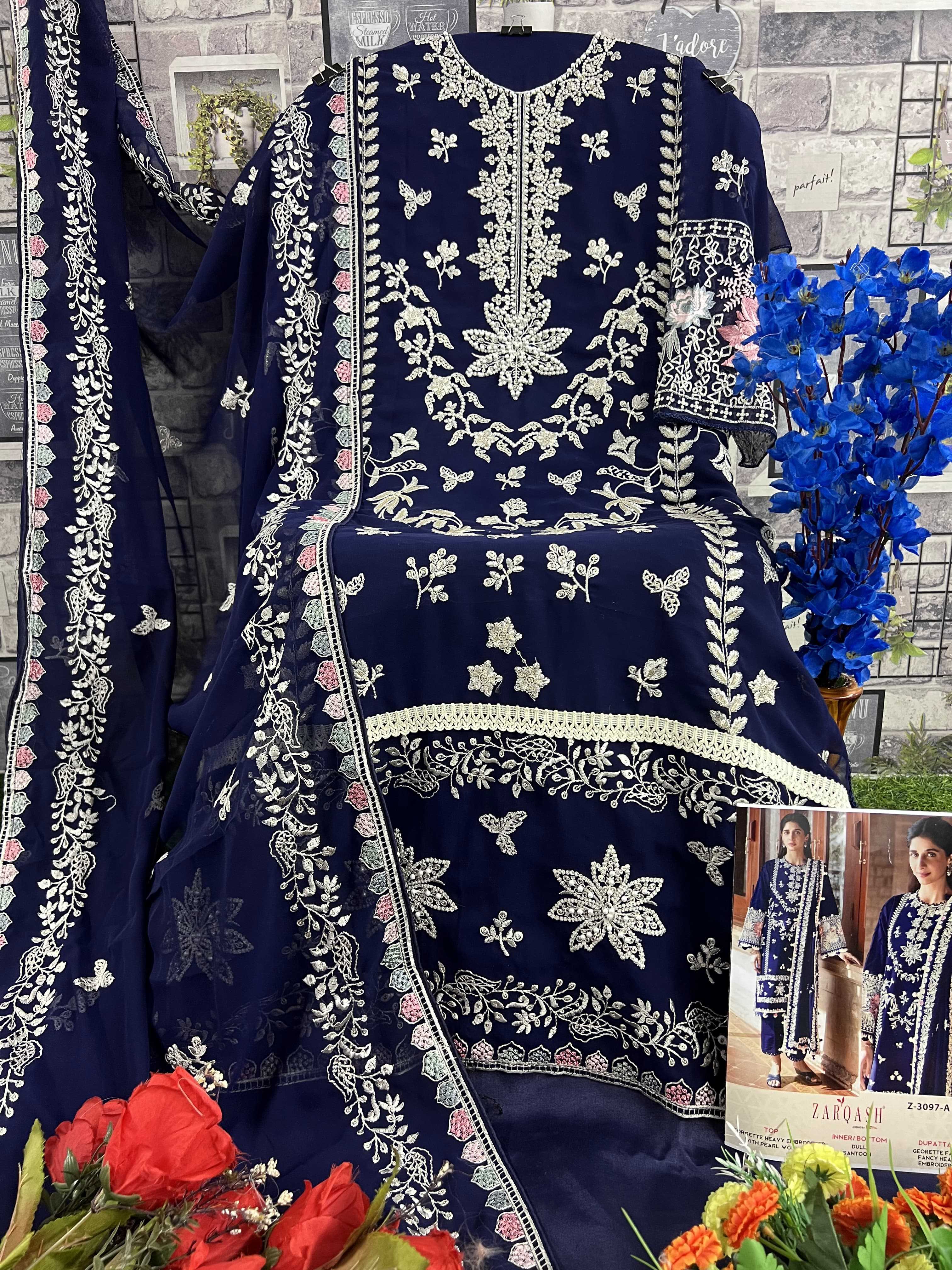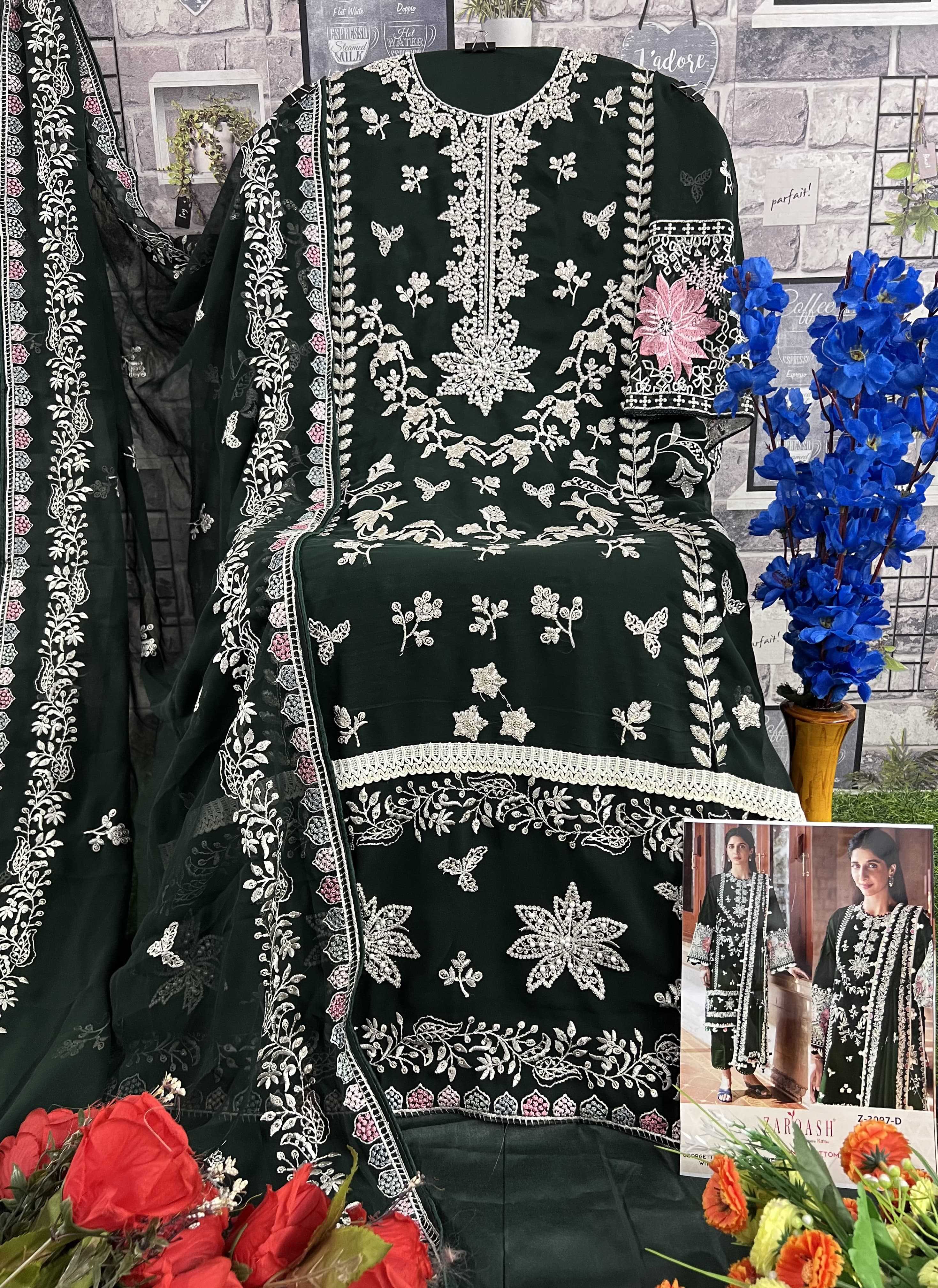 Looking for zarqash presents z 3097 designer pakistani concept salwar suit material exports Full Catalouge at Best Price? Buy Now zarqash presents z 3097 designer pakistani concept salwar suit material exports at Wholesale Rate of Rs 4996 with Total 4 Pcs from authroized dealer and supplier of Brand. Cost of Each piece is just only Rs 1249 which is very low and affordable price to resale the product in your retail store. rrgandhi is Surat based Wholesale Supplier & Dealer of Brand. Click on Brand name to Know more about Brand's products.
