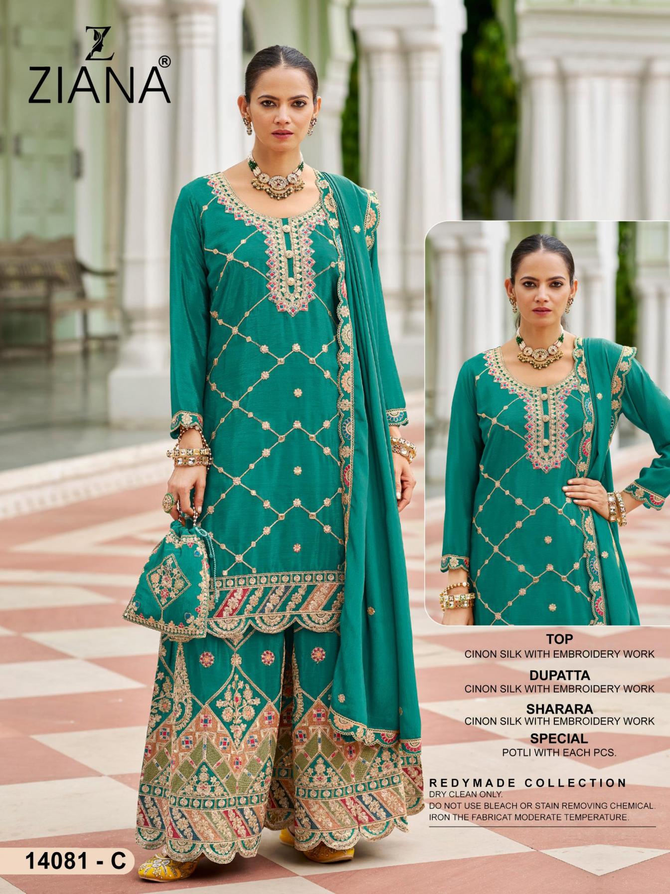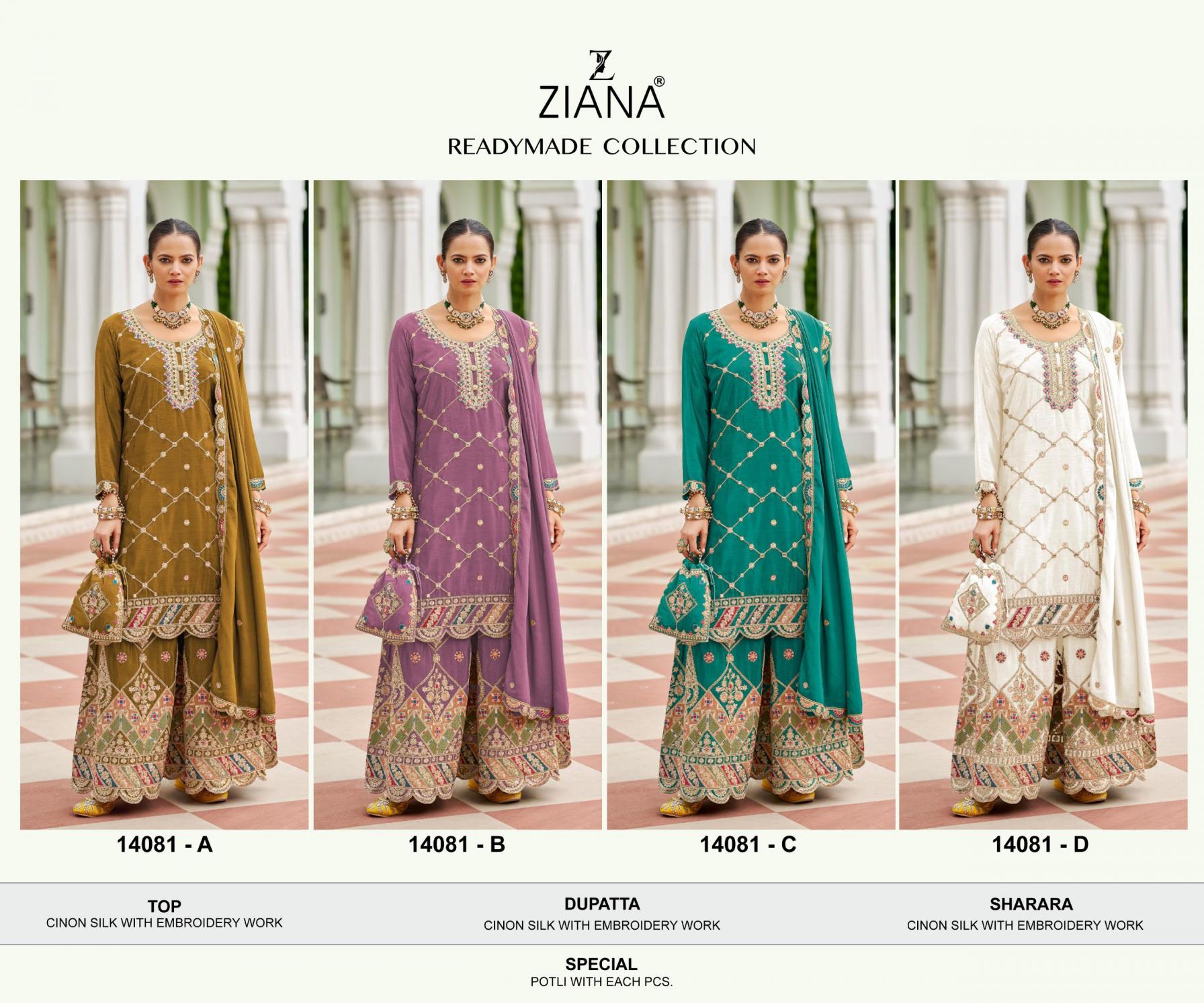 Looking for ZIANA 14081 AMAZING CHINON SILK FULL STITCH PAKISTANI PLAZZO DRESS Full Catalouge at Best Price? Buy Now ZIANA 14081 AMAZING CHINON SILK FULL STITCH PAKISTANI PLAZZO DRESS at Wholesale Rate of Rs 7980 with Total 4 Pcs from authroized dealer and supplier of ZIANA Brand. Cost of Each piece is just only Rs 1995 which is very low and affordable price to resale the product in your retail store. rrgandhi is Surat based Wholesale Supplier & Dealer of ZIANA Brand. Click on Brand name to Know more about Brand's products.